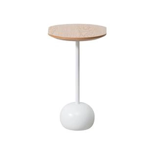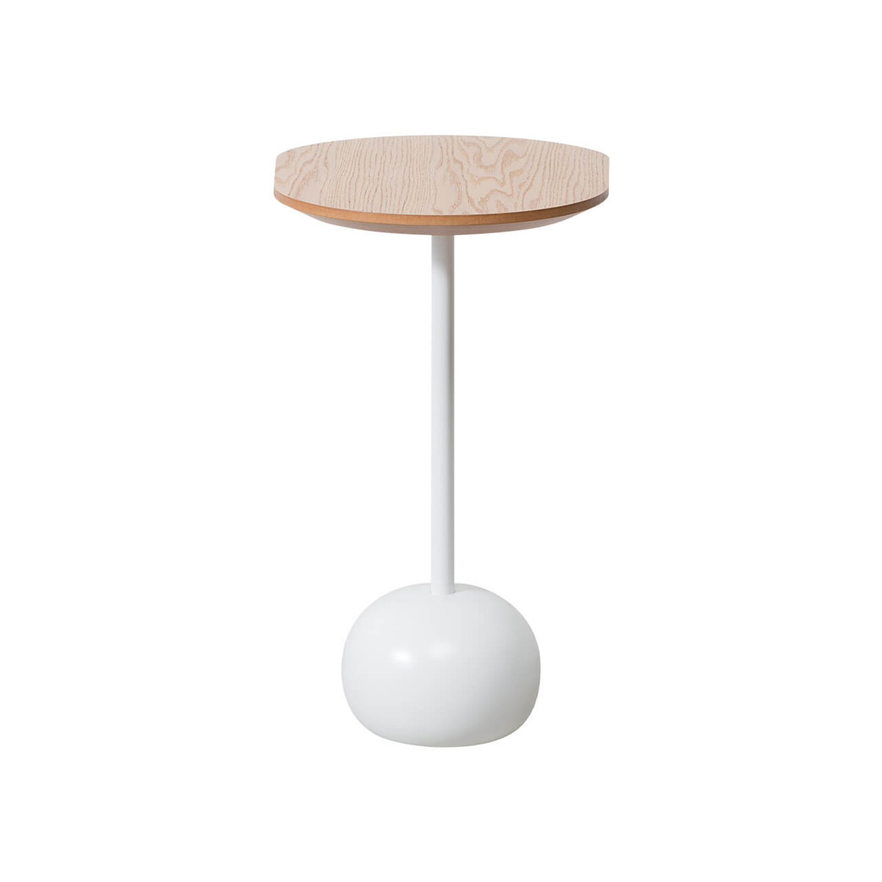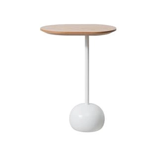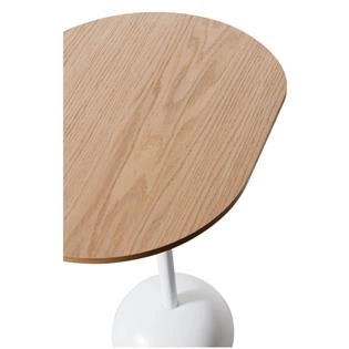 Base em madeira maciça com acabamento em laca fosca branca. Tubo em alumínio com acabamento em pintura epóxi branca. Tampo em MDF com lâmina de madeira natural carvalho. *Produto entregue montado.