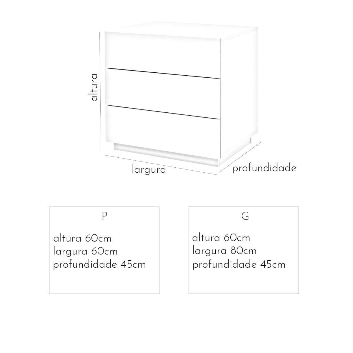 Produzida em MDF com acabamento em lâmina de madeira natural cinamomo na versão madeira e laca fosca na opção branca. Gavetas com trilhos telescópicos. *Produto entregue montado.