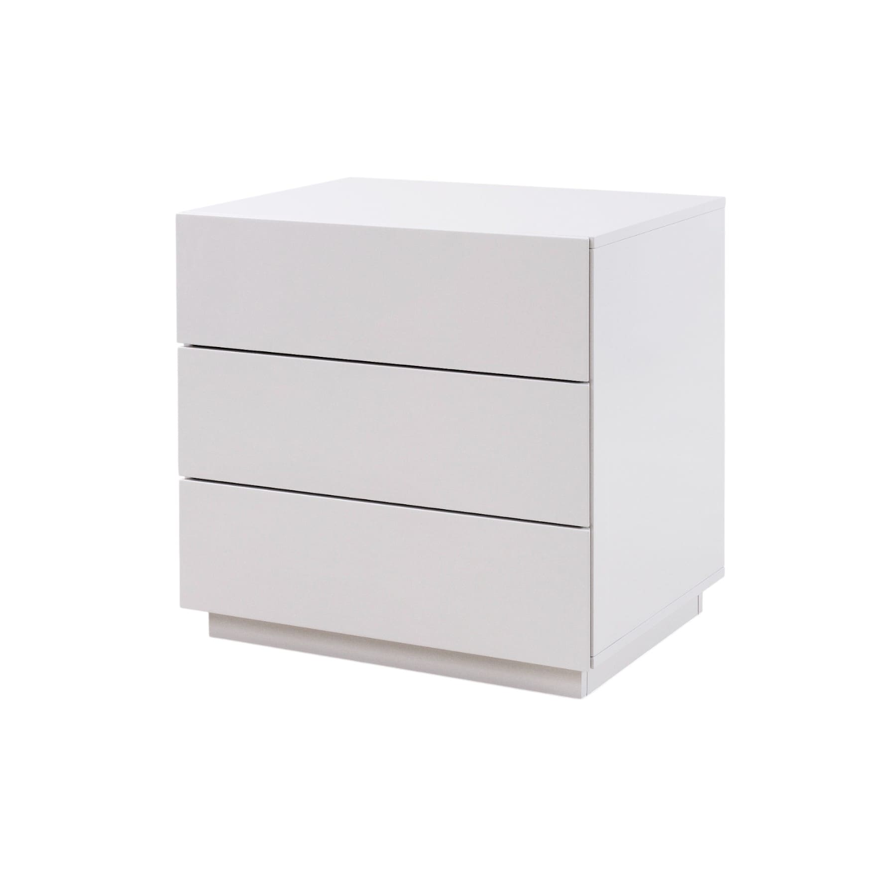 A mesa de cabeceira alter com design clean e linhas retas, aposta no minimalismo para valorizar a matéria-prima: madeira maciça de cinamomo, que traz toda a textura e calor natural, ou em acabamento laca. A base levemente recuada dá a sensação de leveza.