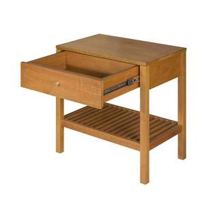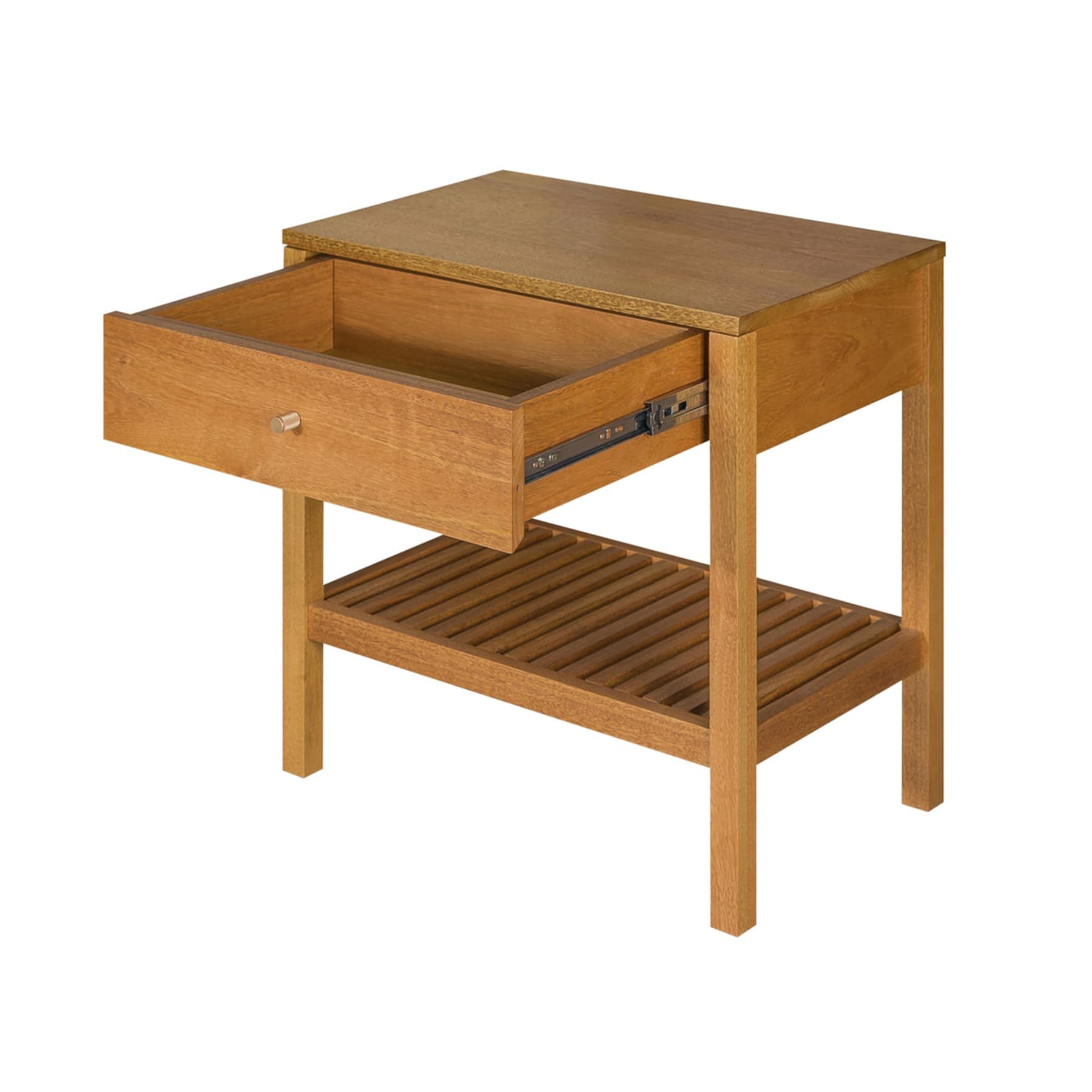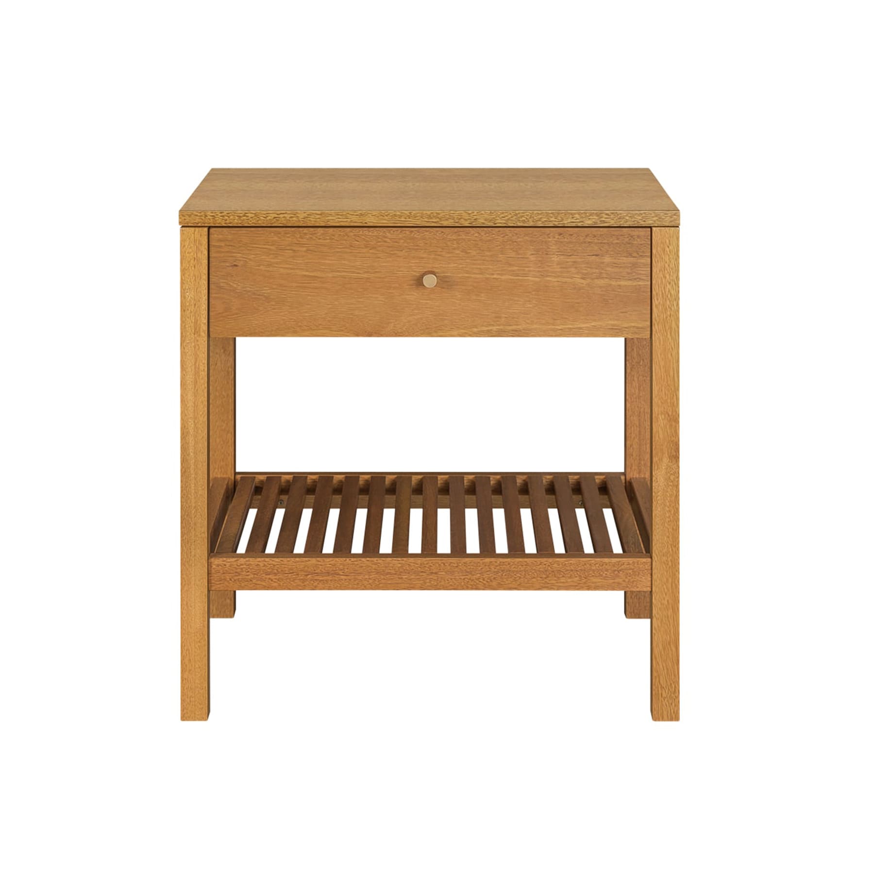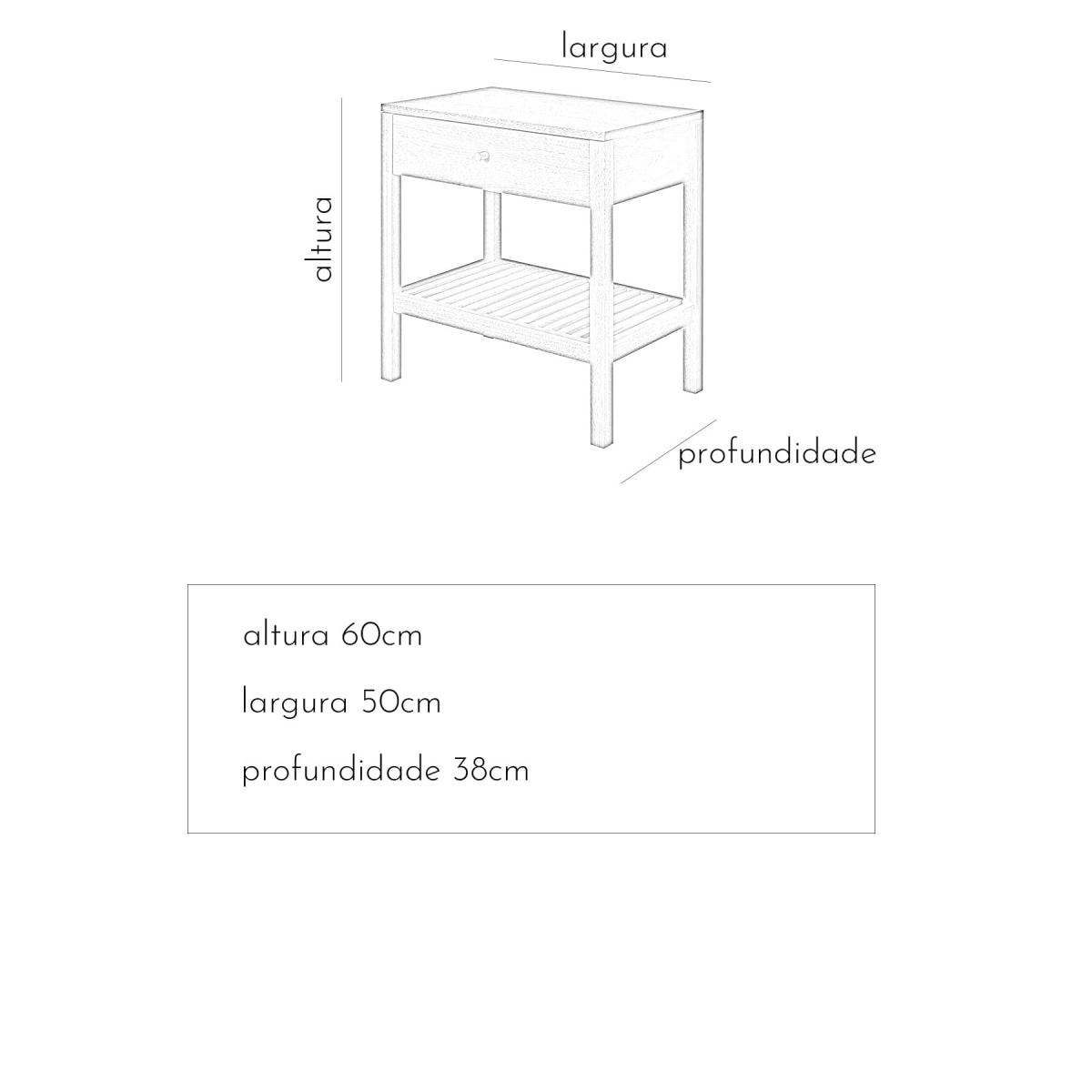 Produzido em madeira maciça eucalipto de reflorestamento. Gaveta com corrediça telescópica. Puxador em alumínio fundido com pintura dourado fosco.*Produto entregue montado.