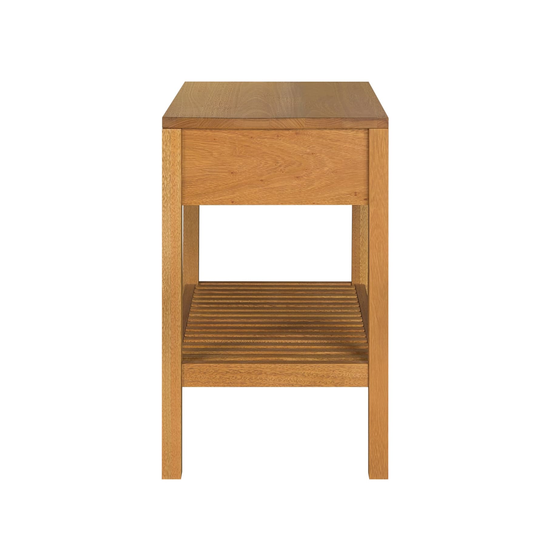 A madeira maciça e o ripado fazem da mesa vit uma peça muito charmosa e prática. A gaveta e a prateleira oferecem muito espaço de armazenagem e dão o acabamento perfeito para decoração com sofisticação.
