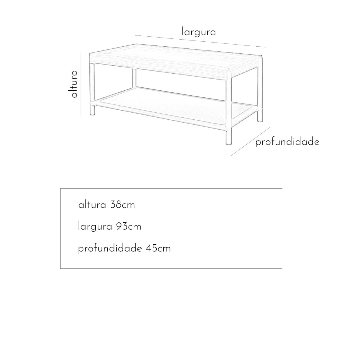 Pés em madeira maciça. Tampo em MDP com acabamento melamina BP. Tampo inferior com acabamento em palha de celulose. *Produto entregue desmontado. Nível de dificuldade de montagem: fácil. Não necessita montagem profissional.