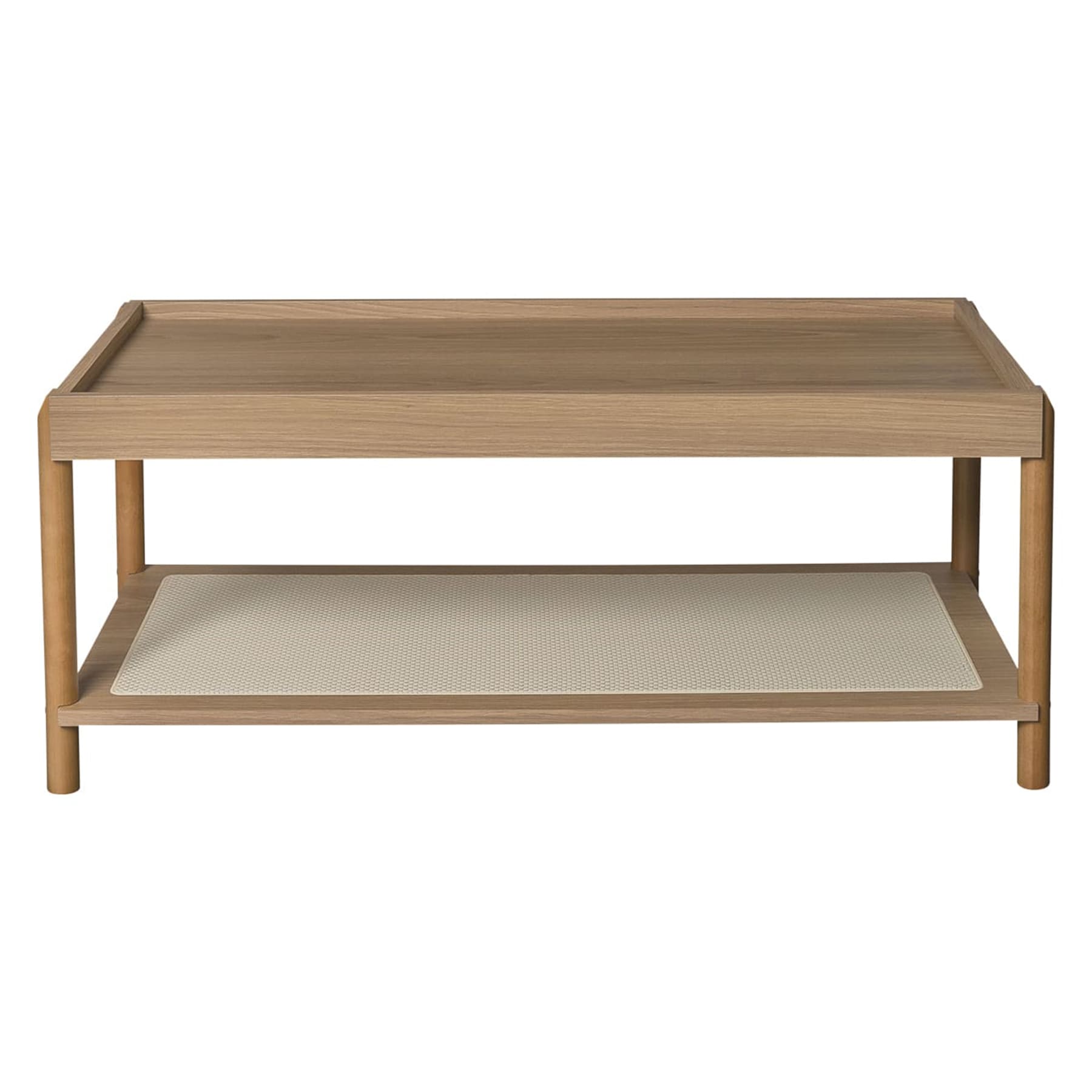 A combinação de madeira e palha tornam a peça contemporânea, mas com um toque vintage. A prateleira e o tampo bandeja dão espaço de armazenagem e apoio.
