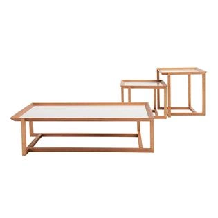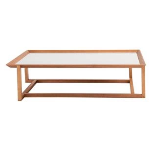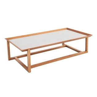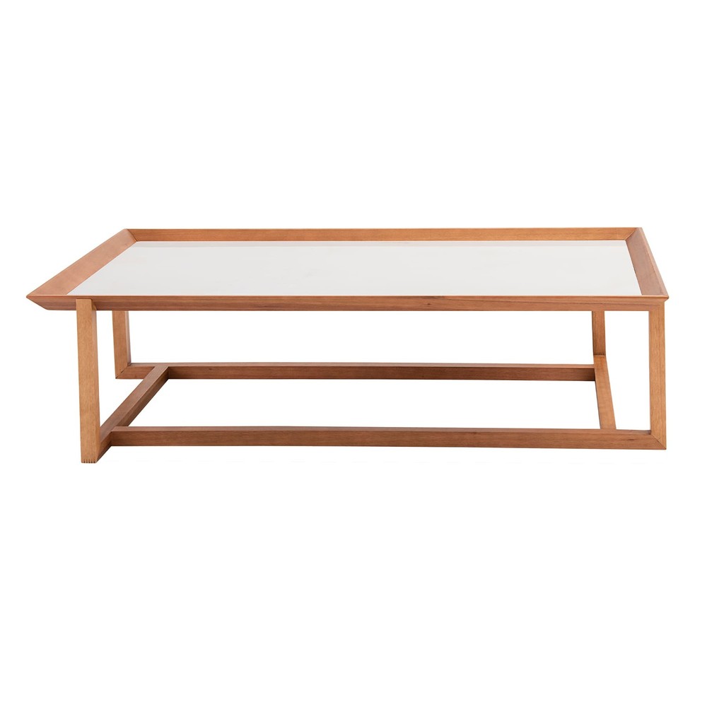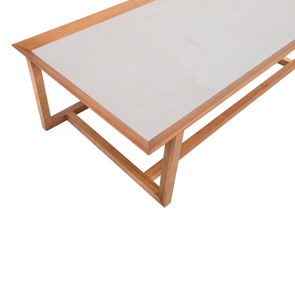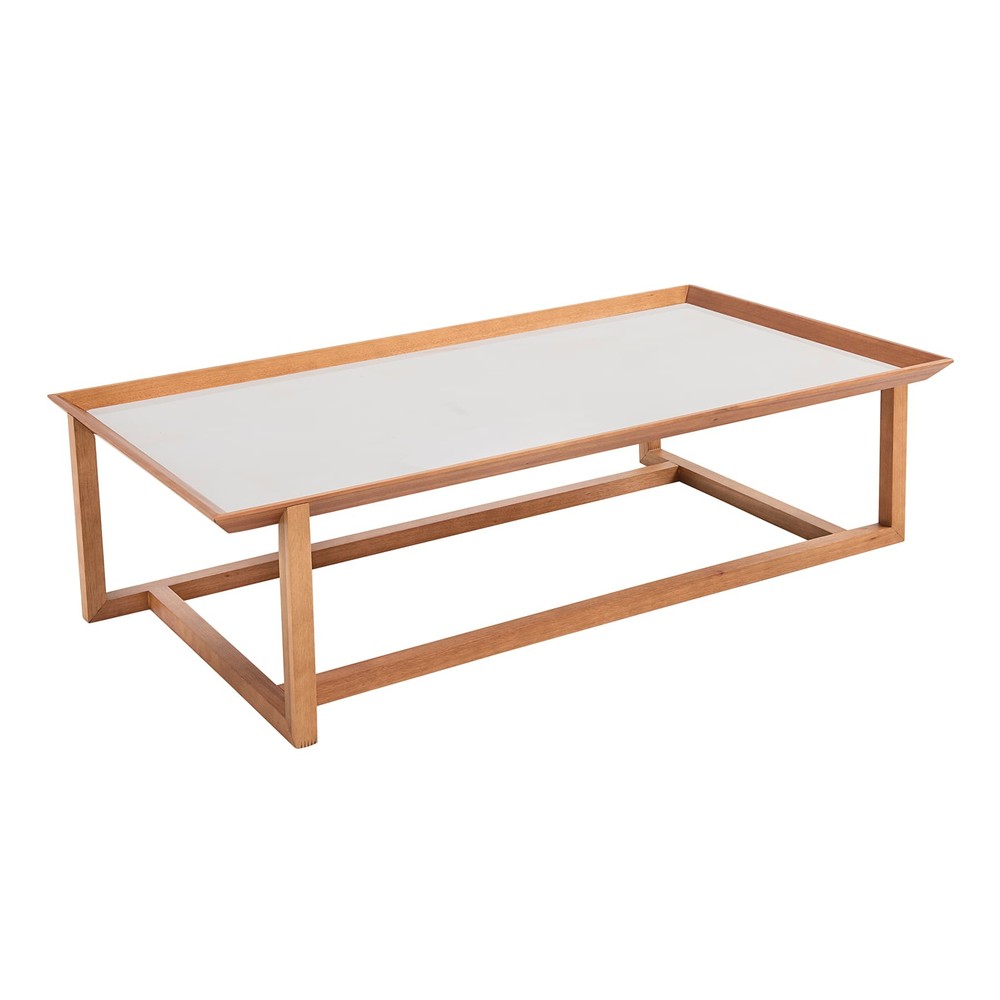 O desenho com linhas retas e o detalhe dos pés desencontrados da mesa de centro kobe remetem às referencias orientais e ao minimalismo japandi. Desenhada por Emerson Borges.
