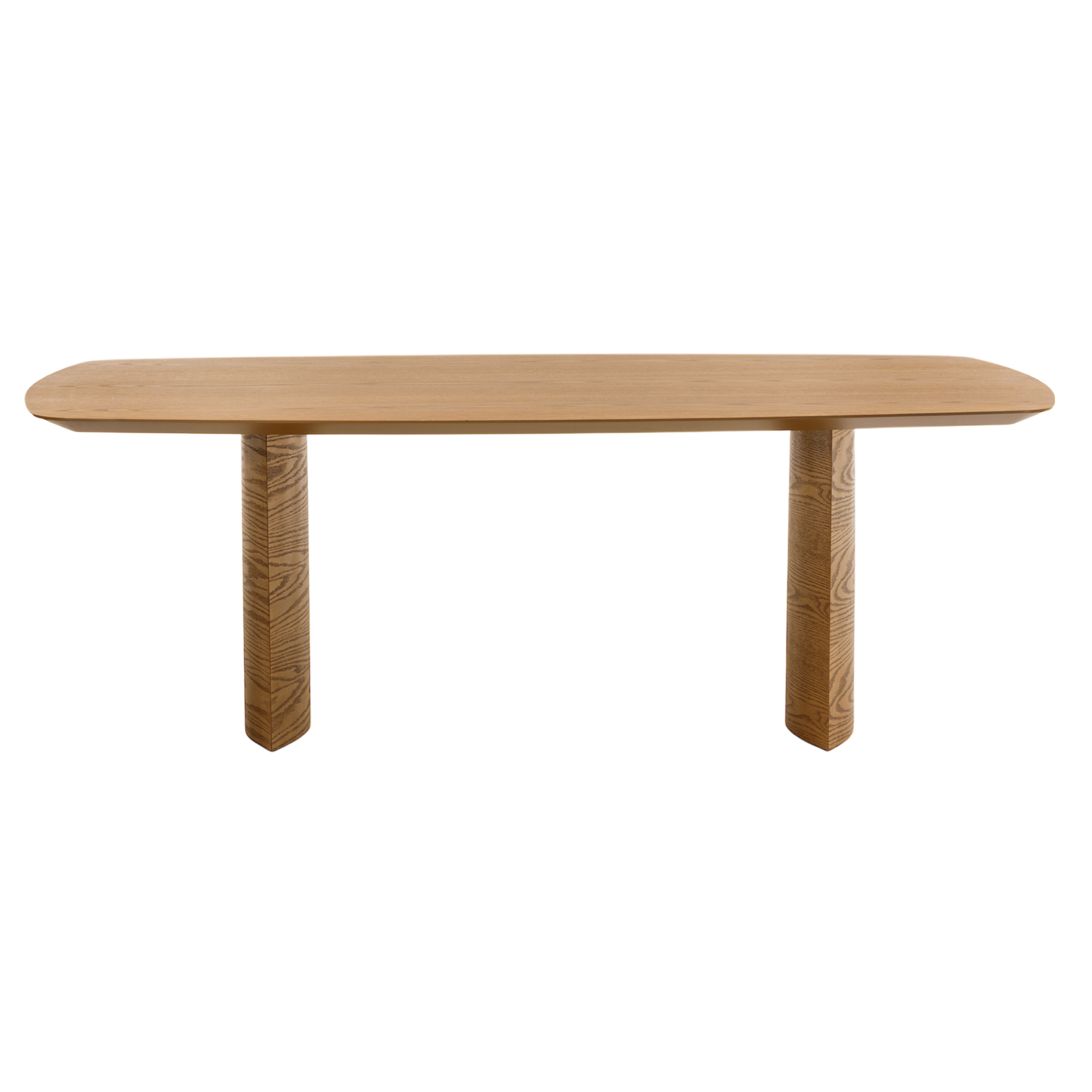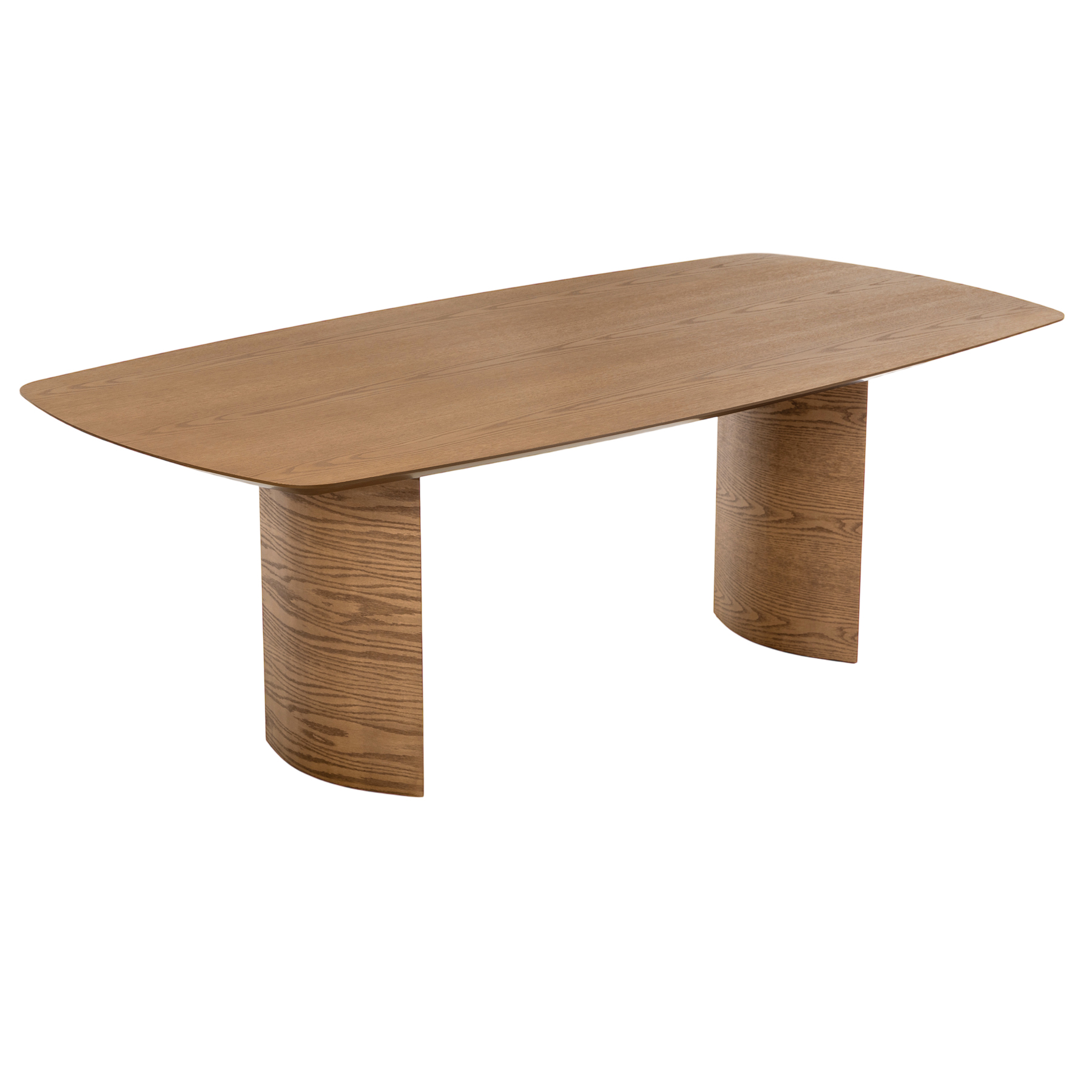 A mesa de jantar valência tem os pés elípticos com as pontas em ângulo reto, que deixam ainda mais especial a madeira carvalho da mesa. Uma peça que sofistica o ambiente em função do desenho e da madeira em que é produzida.