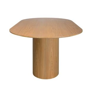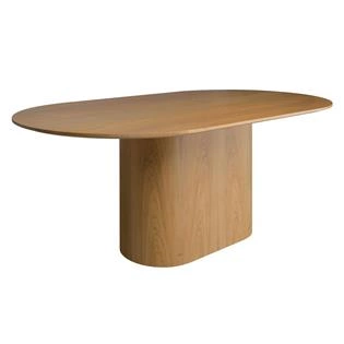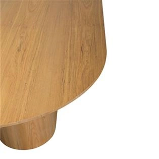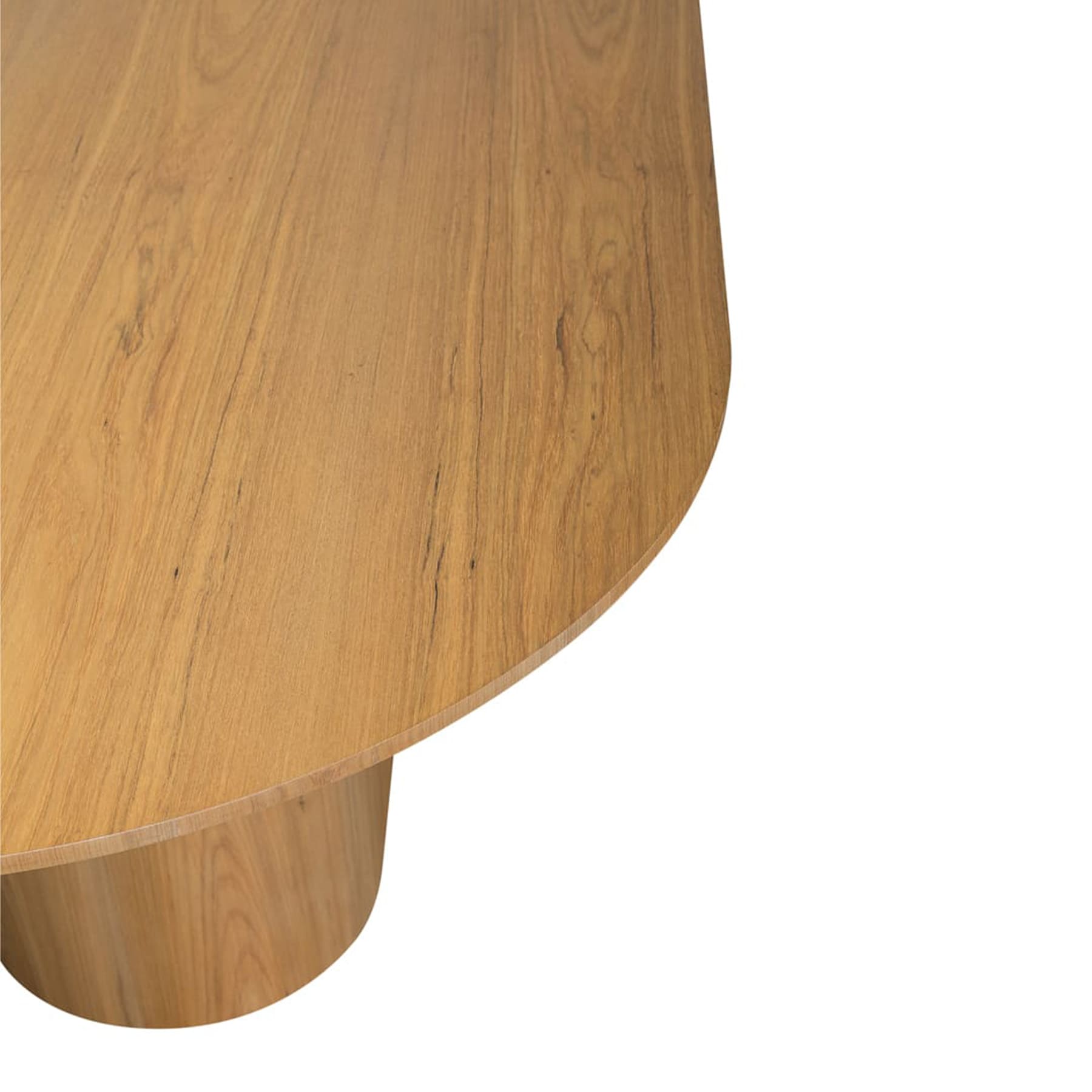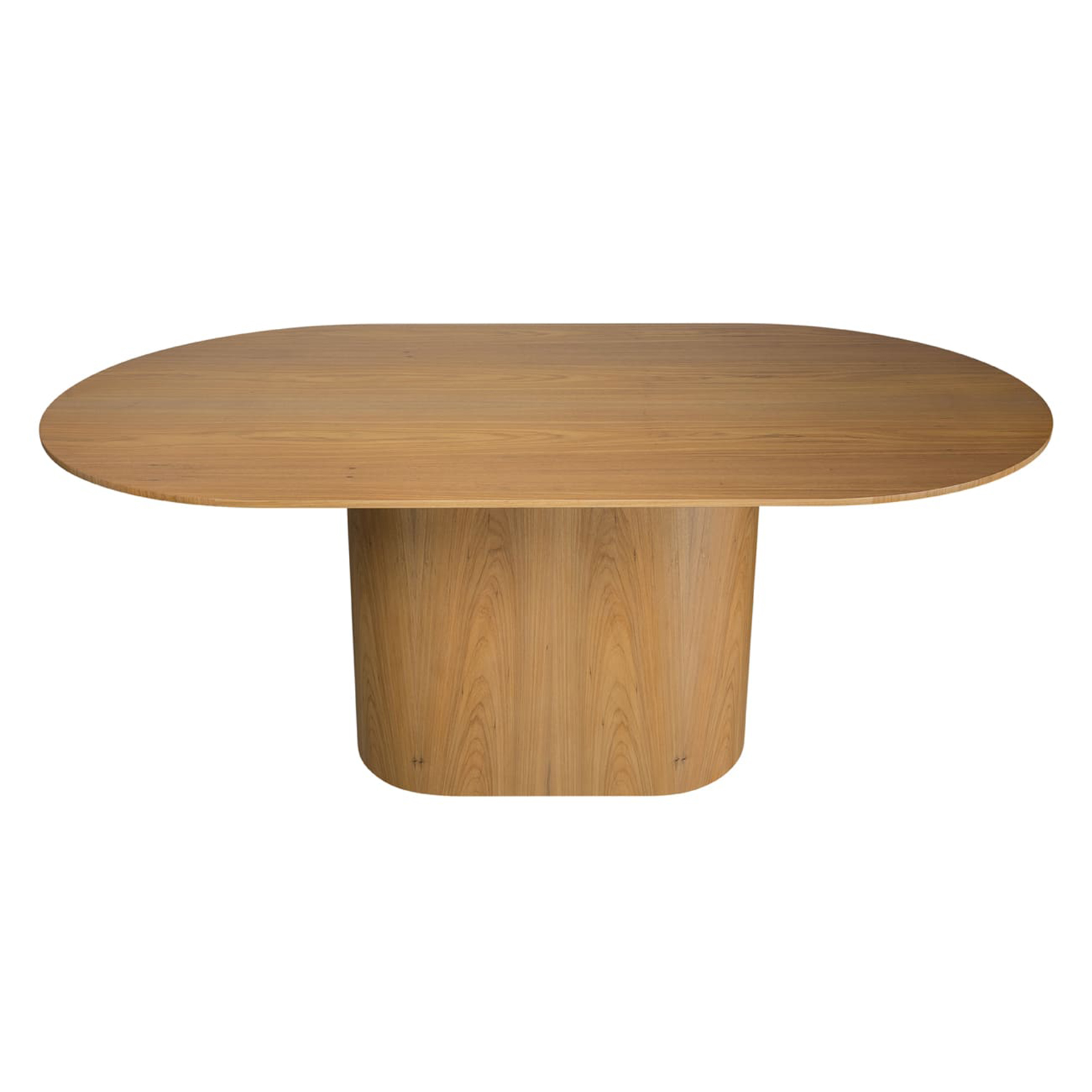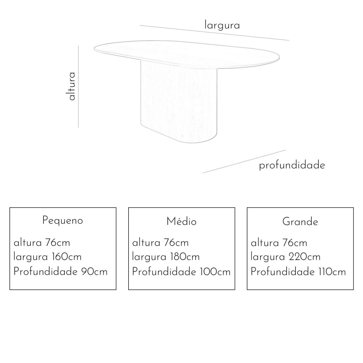 A mesa trancoso é oblonga, um formato contemporâneo e prático. Os arredondados facilitam a circulação e remetem à natureza. A lâmina natural de madeira louro freijó tem os veios naturais ainda mais destacados em função da forma.
