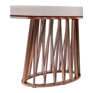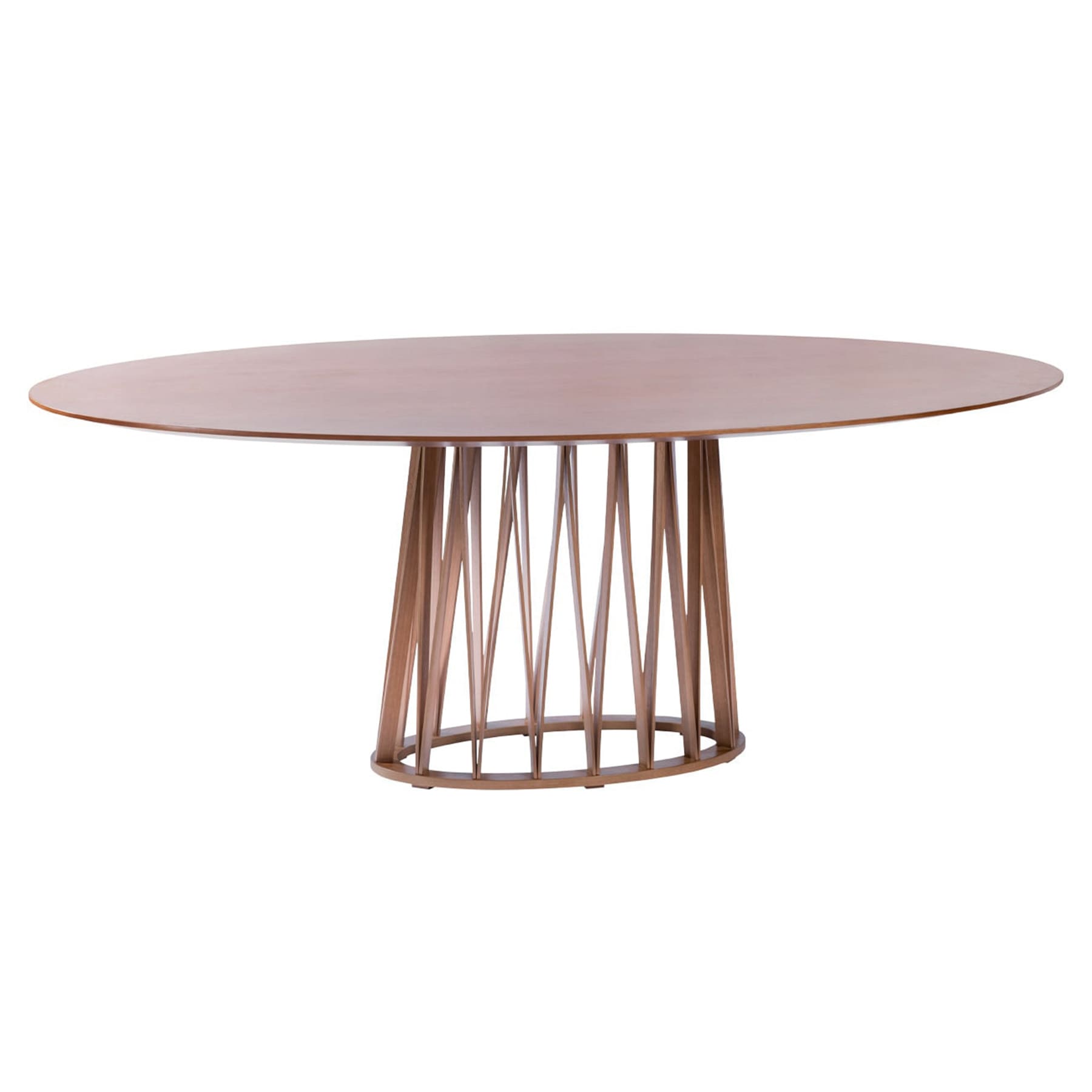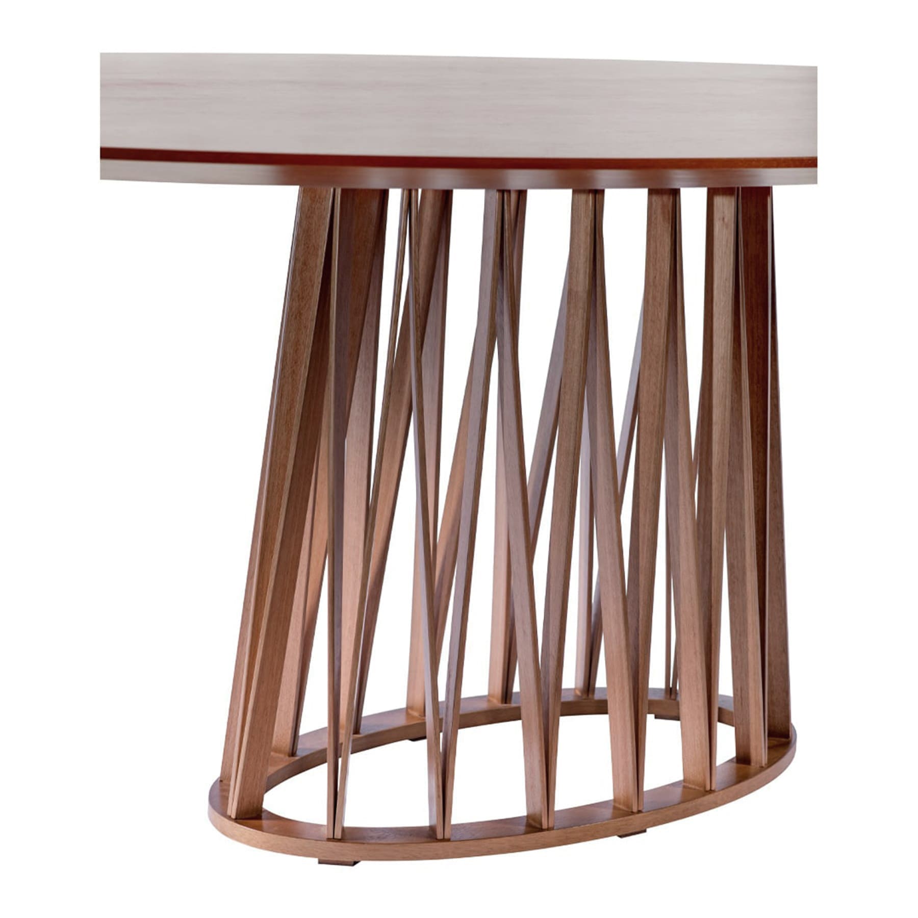 O formato oval e a base em ripas de madeira vazadas dão à mesa mint leveza. Moderna e com alta qualidade de acabamento, é perfeita para salas de jantar contemporâneas.