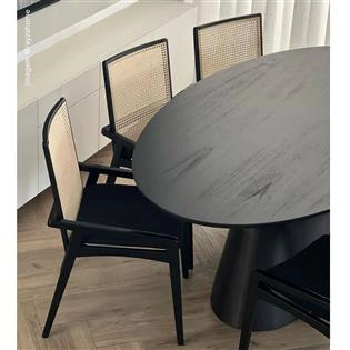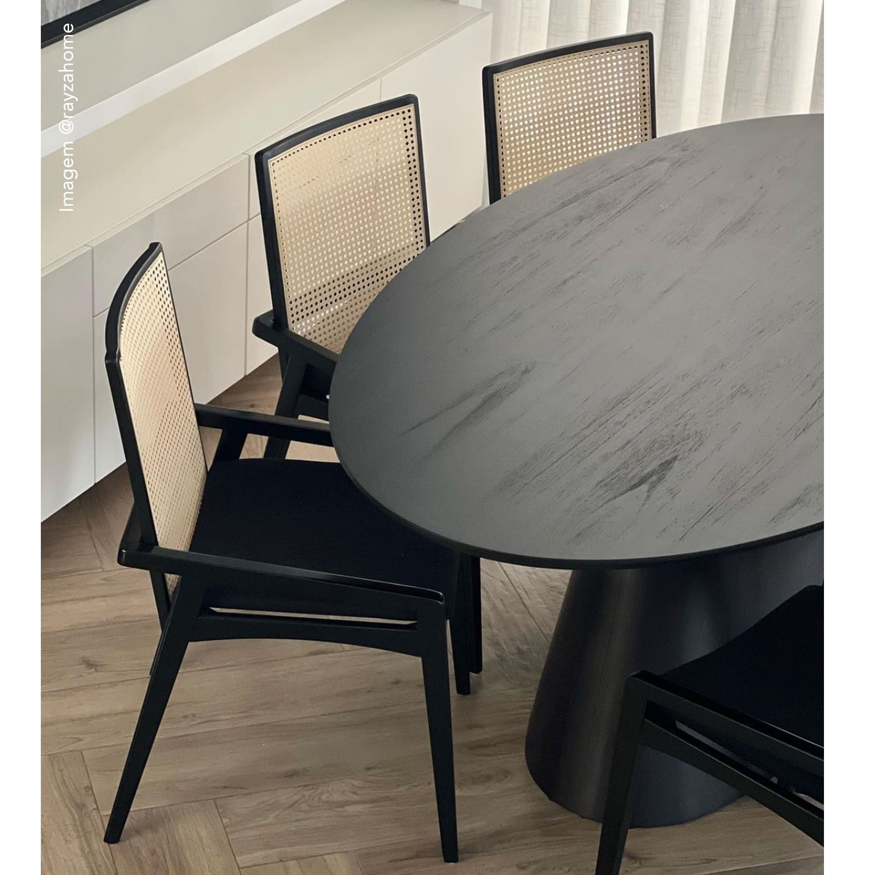 Base e tampo em MDF com acabamento em madeira natural cinamomo com tingimento preto (ebanizado que mostra os veios da madeira).*Produto entregue semi montado (base e tampo separados). Nível de dificuldade de montagem: médio. Recomendada montagem profissional.