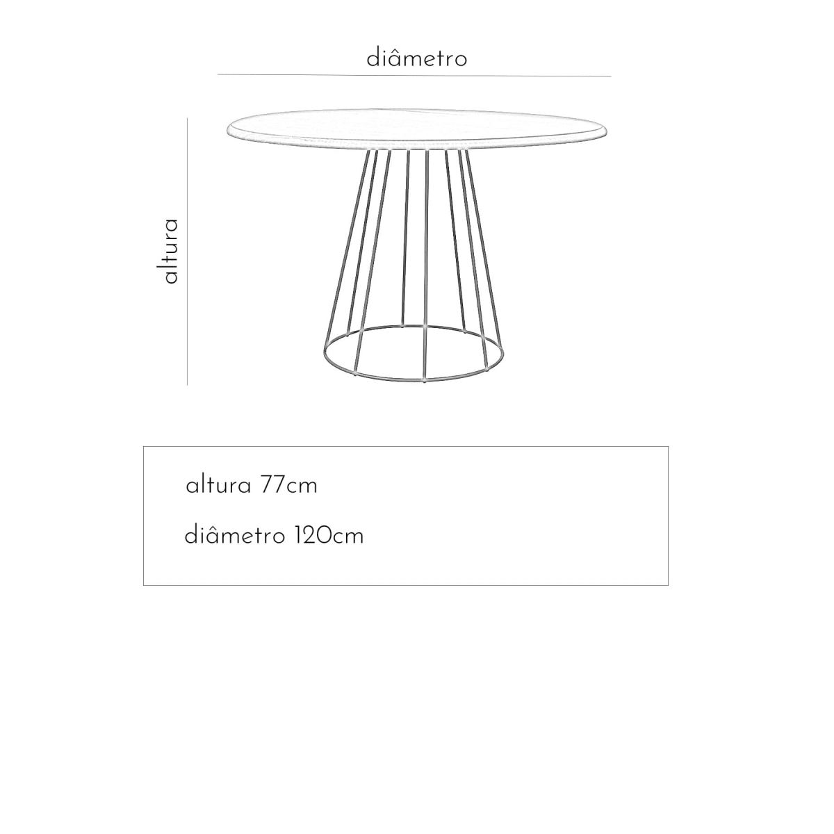 A mesa mykonos com base cônica em tubos de ferro é uma peça contemporânea e versátil. Pode acomodar até 6 cadeiras (de acordo com o tamanho das cadeiras).