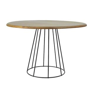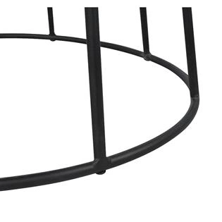 Base produzida em ferro com pintura epóxi preta fosca. Tampo produzido em MDF 18mm com acabamento em verniz.*Produto entregue semi montado. Nível de dificuldade de montagem: médio. Não necessita montagem profissional.