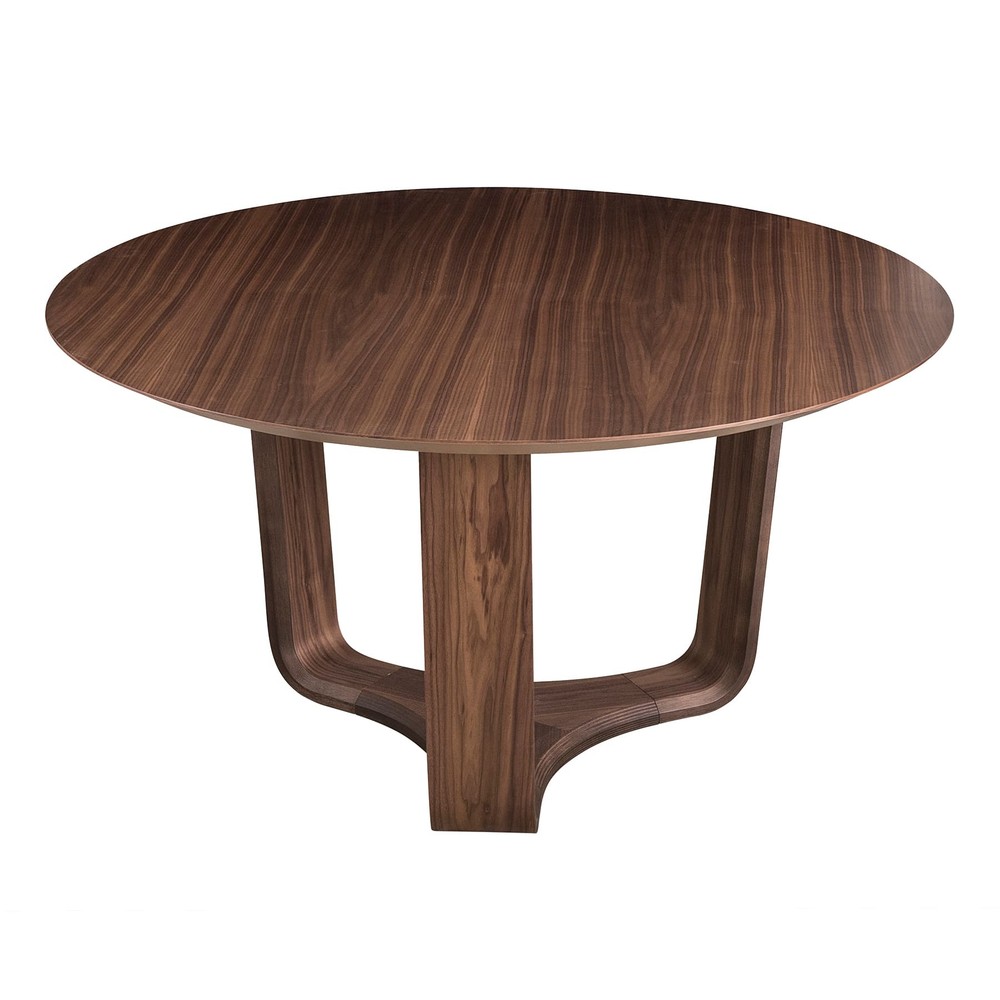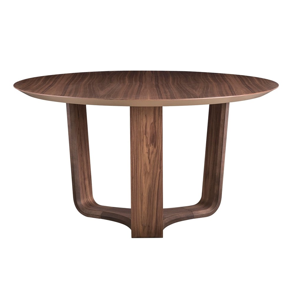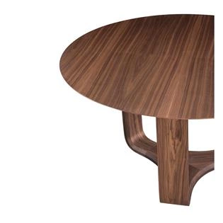 Base triangular em madeira multilaminada curva com acabamento em lâmina natural de madeira nogueira. Tampo em MDF de espessura 25mm para a medida de 135cm e 42mm para as outras medidas, com acabamento em lâmina natural de madeira nogueira. *Essa peça pode ser produzida em outras cores de madeira e laca. Para personalização entre em contato através de qualquer canal de atendimento.