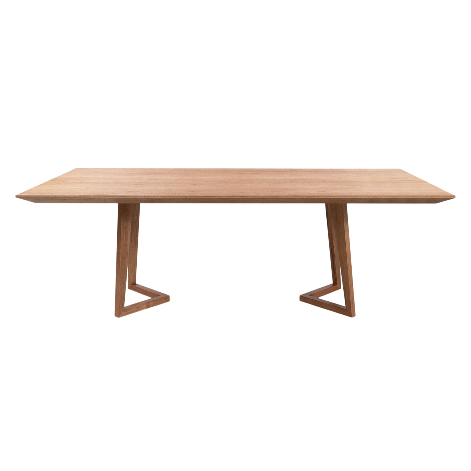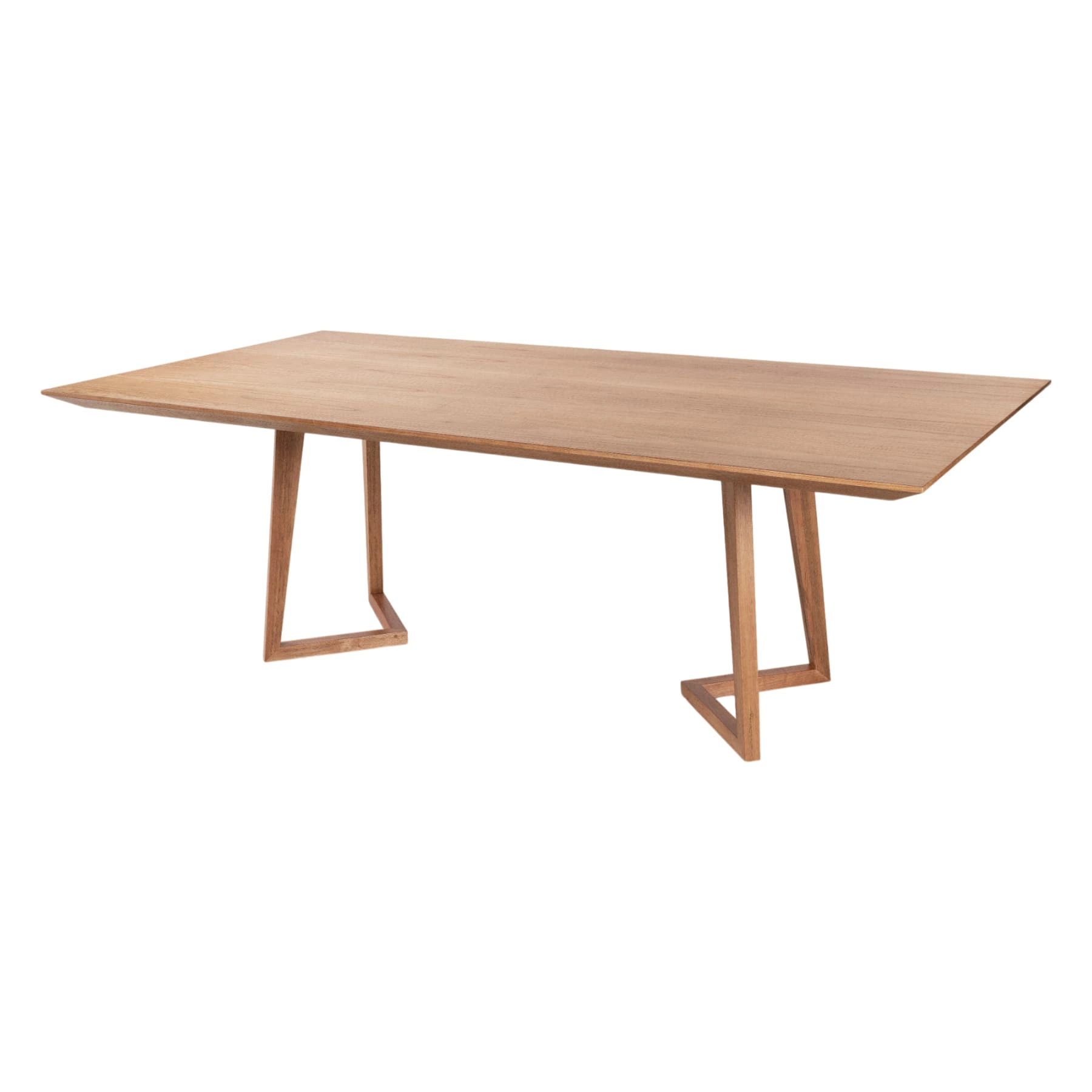A madeira natural cinamomo da mesa asen traz aquele equilíbrio perfeito entre design leve e aconchego. O tampo retangular, com cantos suavemente chanfrados, deixa o visual mais elegante, enquanto a base com pés vazados garante bastante espaço para as pernas.