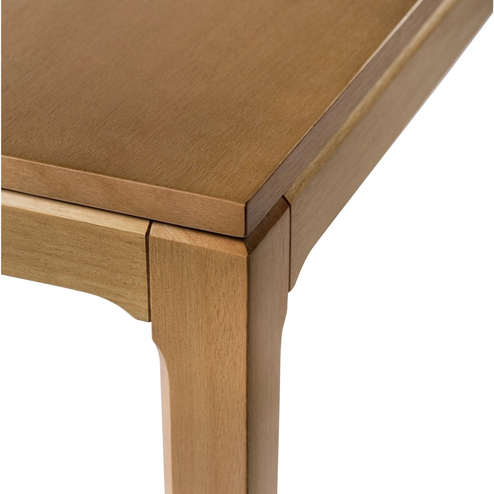 Base em madeira maciça jequitibá. Tampo em MDF com acabamento em lâmina de madeira natural jequitibá. *Produto entregue semi montado. Nível de dificuldade de montagem: médio. Recomendada montagem profissional. *ATENÇÃO: Verifique as medidas de portas e elevadores para possibilitar a entrega. Nossa entrega não inclui içamento e/ou subida por escadas.