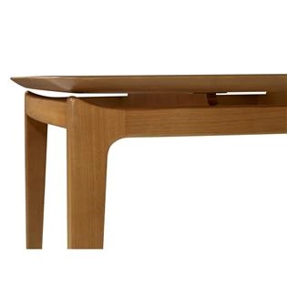 Base em madeira tauari maciça. Tampo em MDF com acabamento em lâmina natural de madeira tauari. *Produto entregue semi montado. Nível de dificuldade de montagem: médio. Recomendada montagem profissional.