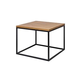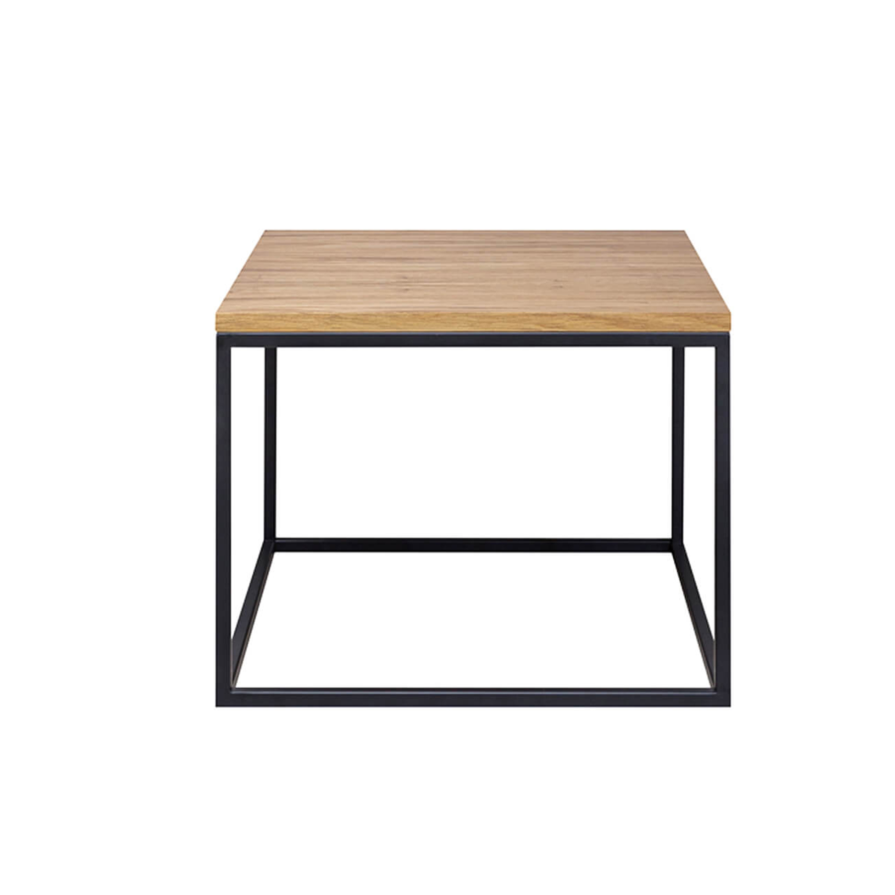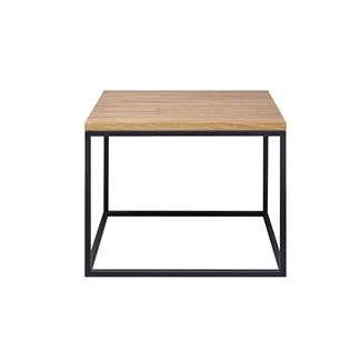 Base em tubo de aço carbono de 15mm com pintura preto fosco. Tampo em MDF de 18mm com acabamento em lâmina de louro freijó natural.*Produto entregue montado.
