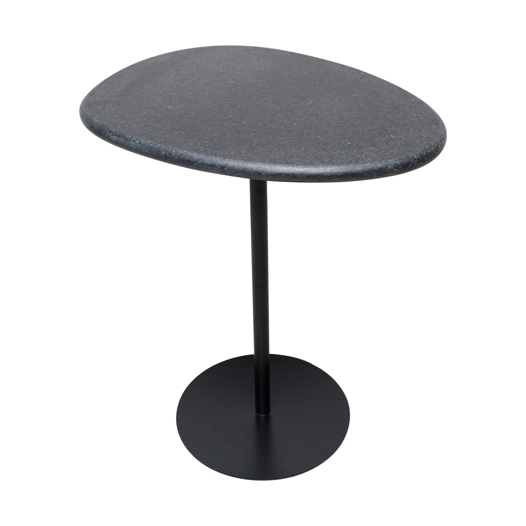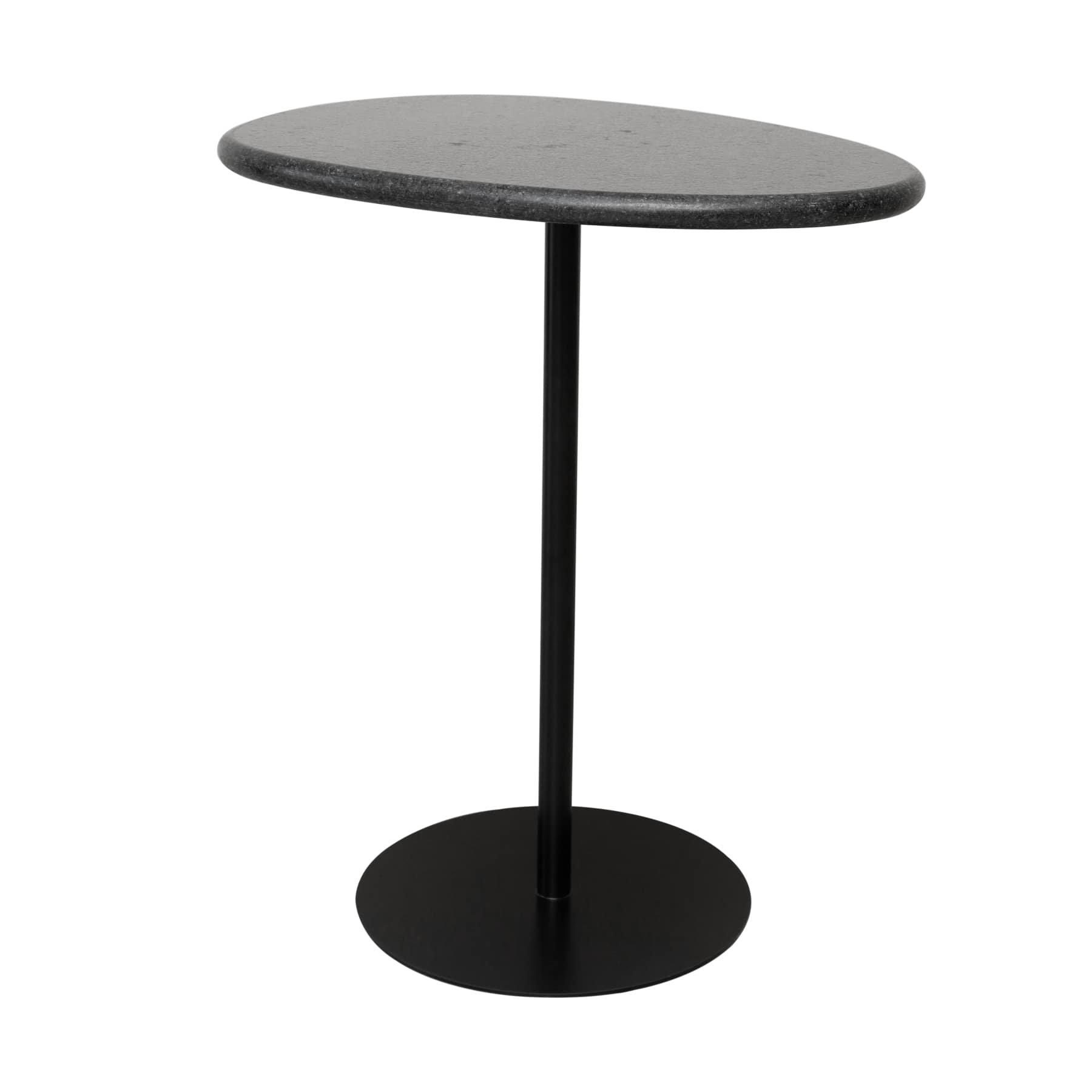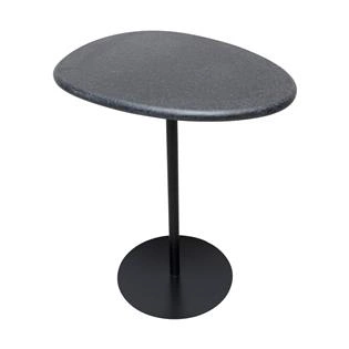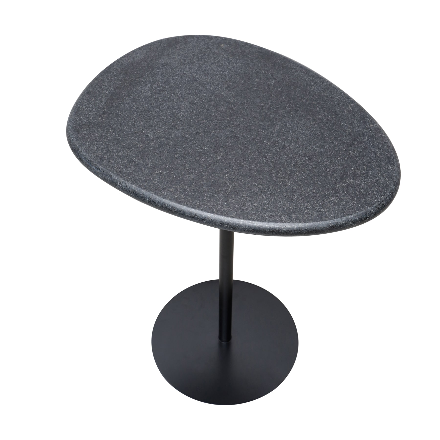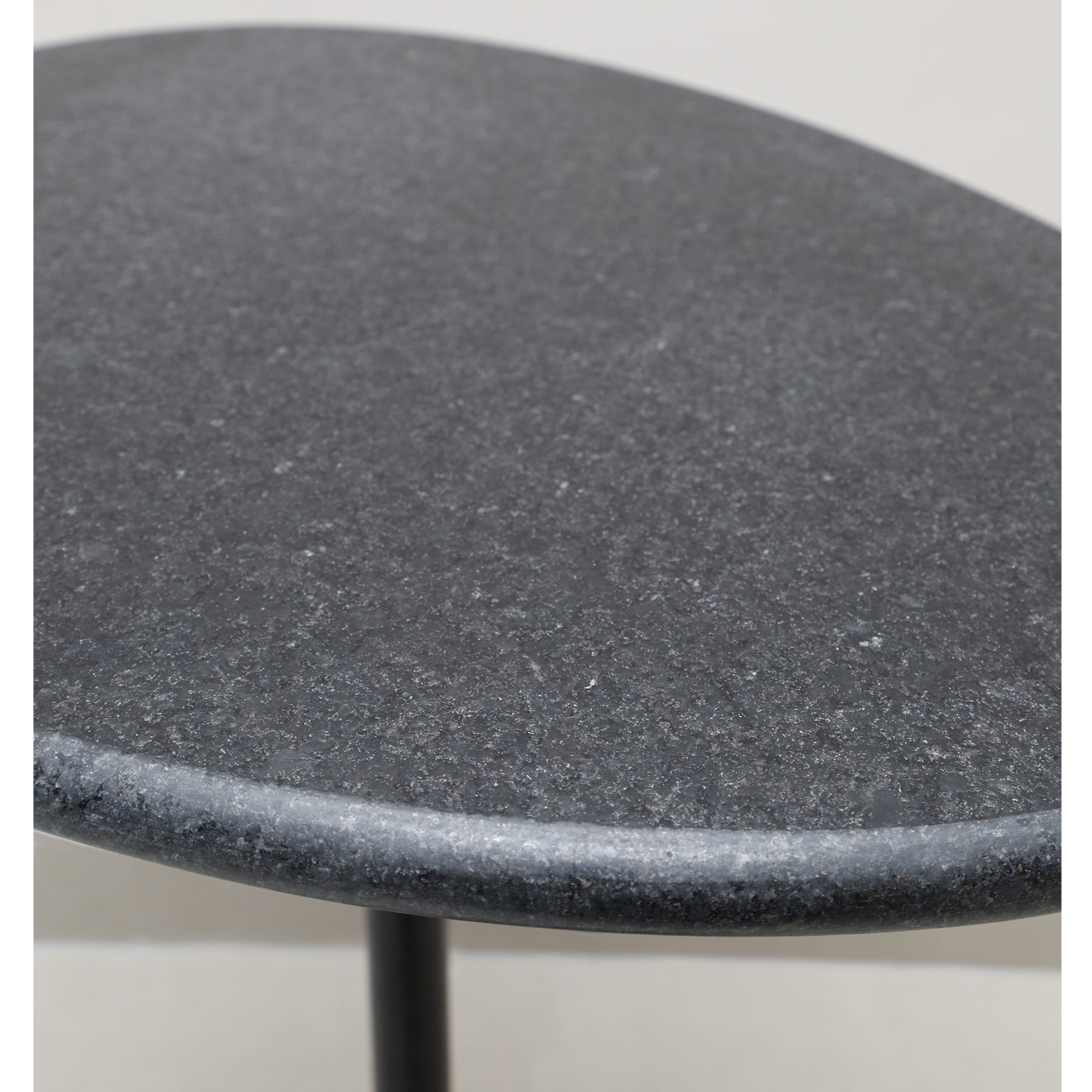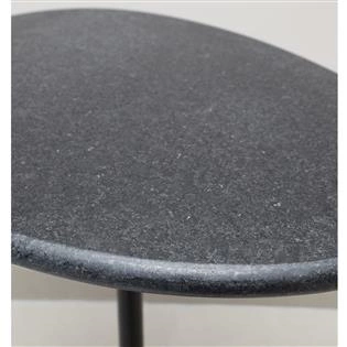 Base em aço carbono com pintura epóxi fosca. Tampo em granito via láctea natural com acabamento escovado. *Produto entregue montado.