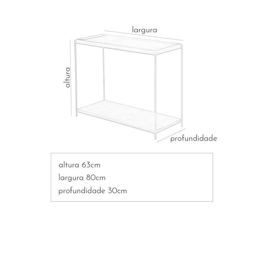 Estrutura em aço carbono com pintura epóxi para o preto e automotiva para as cores metalizadas. Tampos superior e inferior em MDF com acabamento em lâmina natural de cinamomo. *Produto entregue montado.