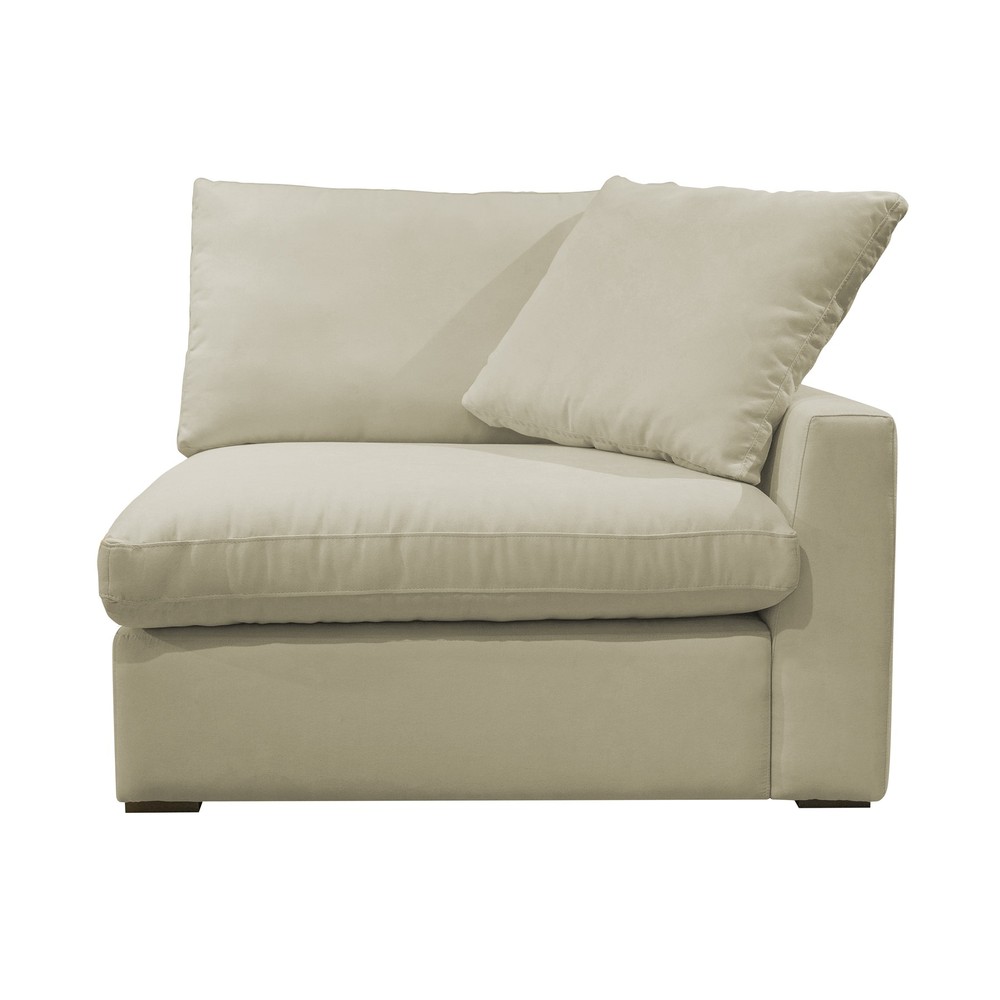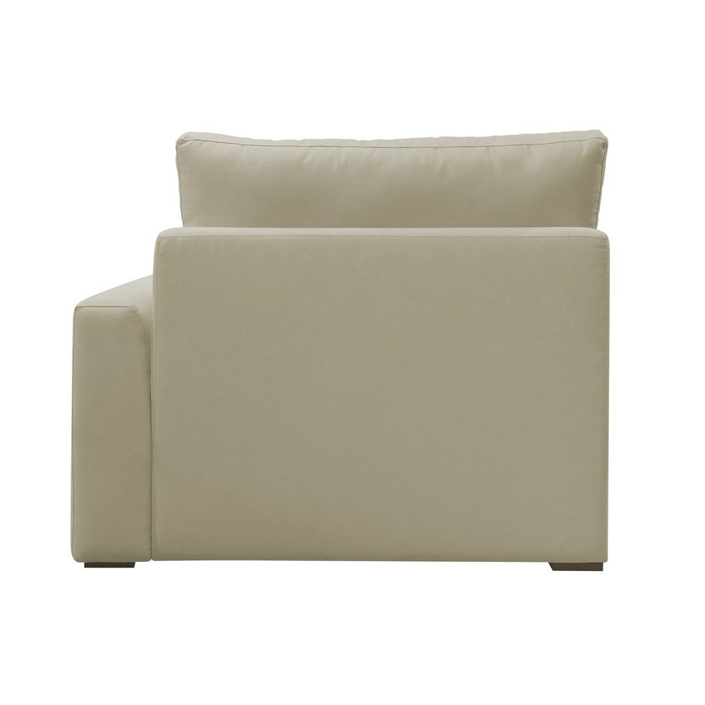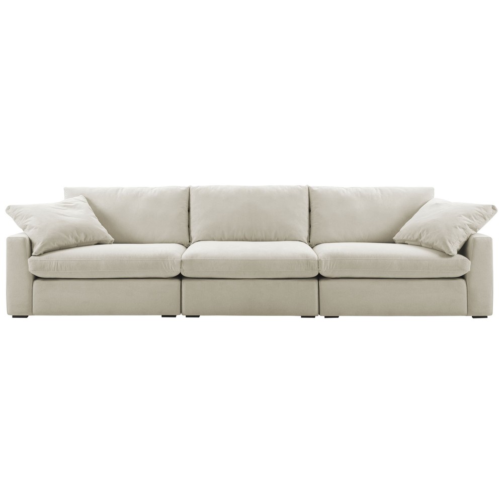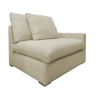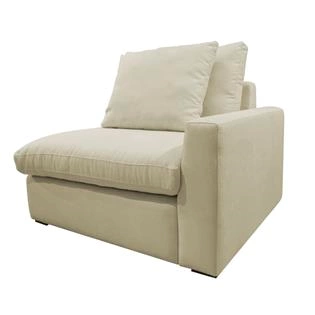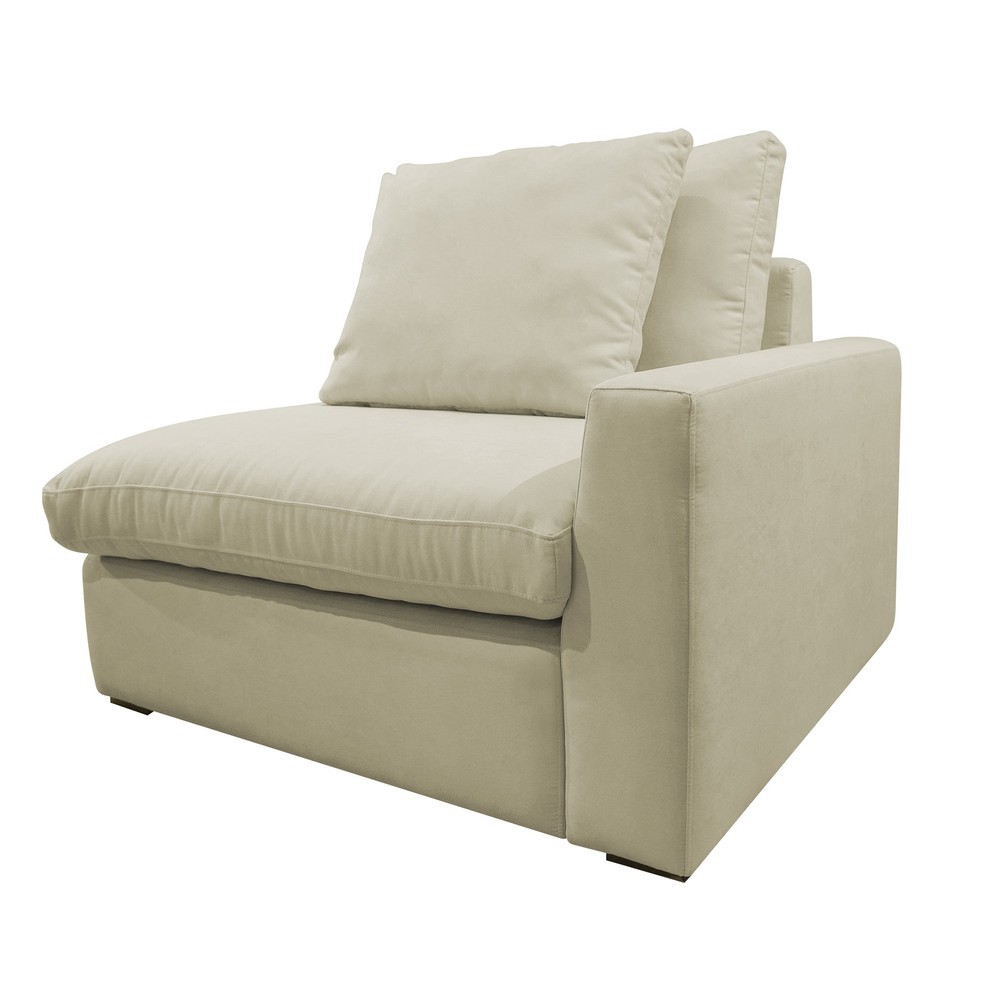 Estrutura em madeira tratada para estofaria. Almofadas de encosto soltas em fibra siliconada plumada e espuma D28. Assento com estrutura em percintas italianas e almofadas fixas em espuma D28 soft e fibra plumada. Pés ocultos em madeira maciça. Ferragens de fixação dos módulos removíveis na parte inferior do sofá.