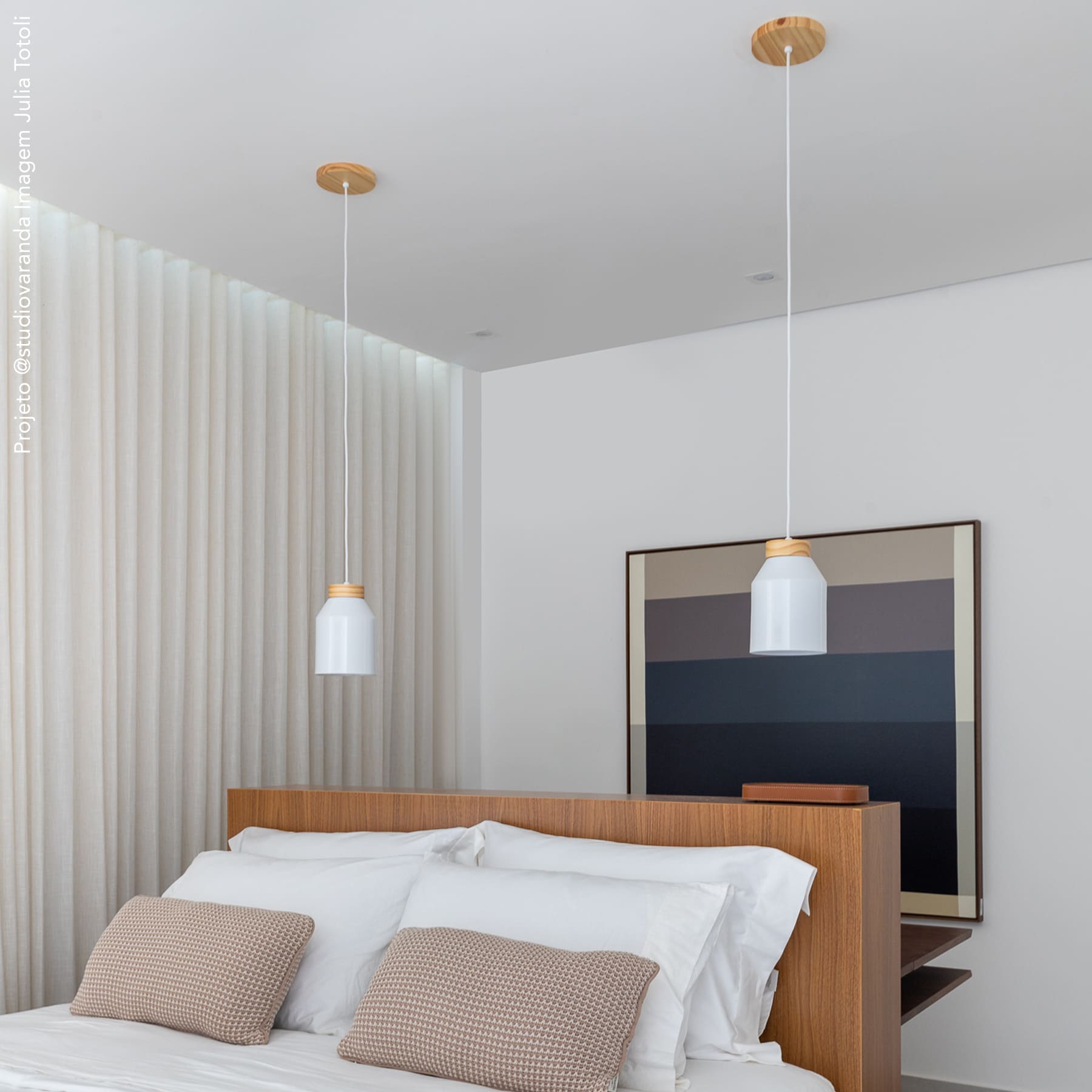 A iluminação moderna vem com materiais naturais e formas geométricas. A madeira trás aconchego, enquanto o metal em cores a modernidade. Uma mistura inusitada e linda de materiais. *O produto não inclui a lâmpada.