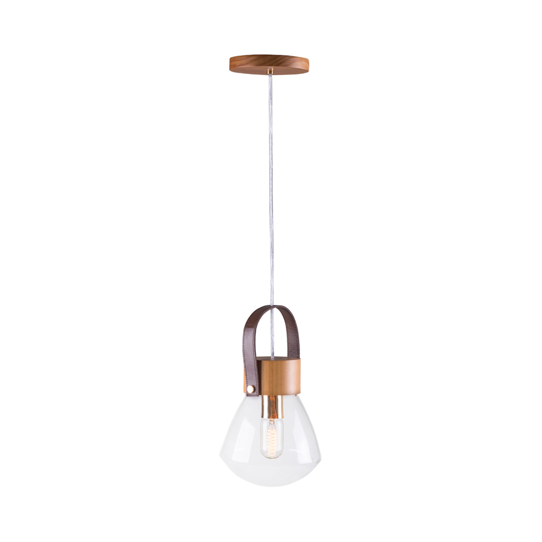 O vidro está de volta a iluminação nas mais diversas formas e cores. Com o couro natural e a madeira, o pendente se torna único. Produzida com vidro soprado artesanalmente com altíssimo padrão de qualidade, que garante uma superfície sem falhas e com reflexo lindo.