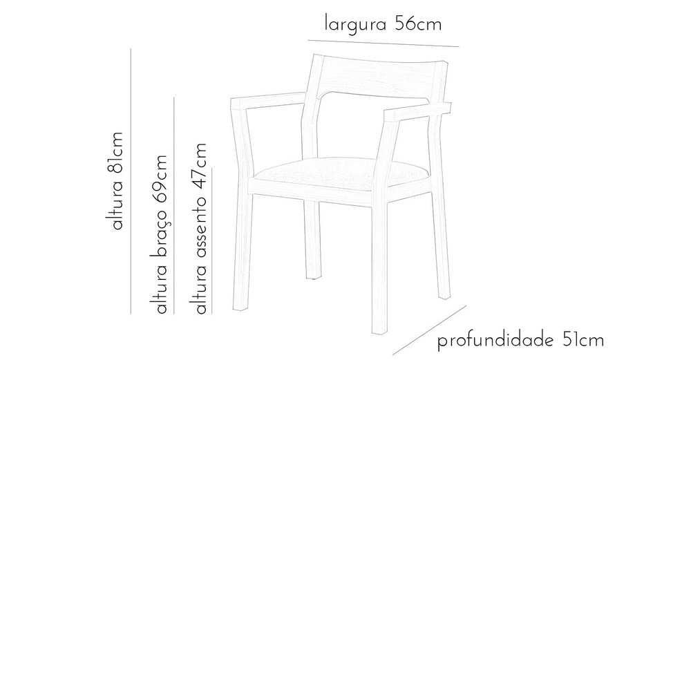 A estrutura em madeira maciça produzida em centro de usinagem de alta precisão dá origem a um produto de qualidade superior. As medidas fazem com que possa ser usada como poltrona de complemento e também na sala de jantar ou no home office