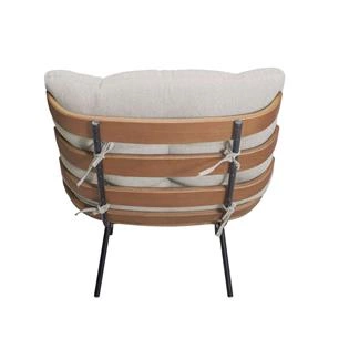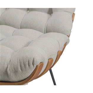 Estrutura em aço carbono com pintura epóxi e madeira multilaminada moldada. Almofadas em flocos de espuma D33 revestidas em tecido com acabamento em botonê com botões forrados e costurados.*Produto entregue montado.