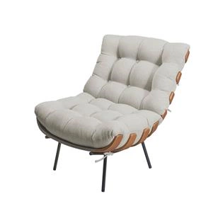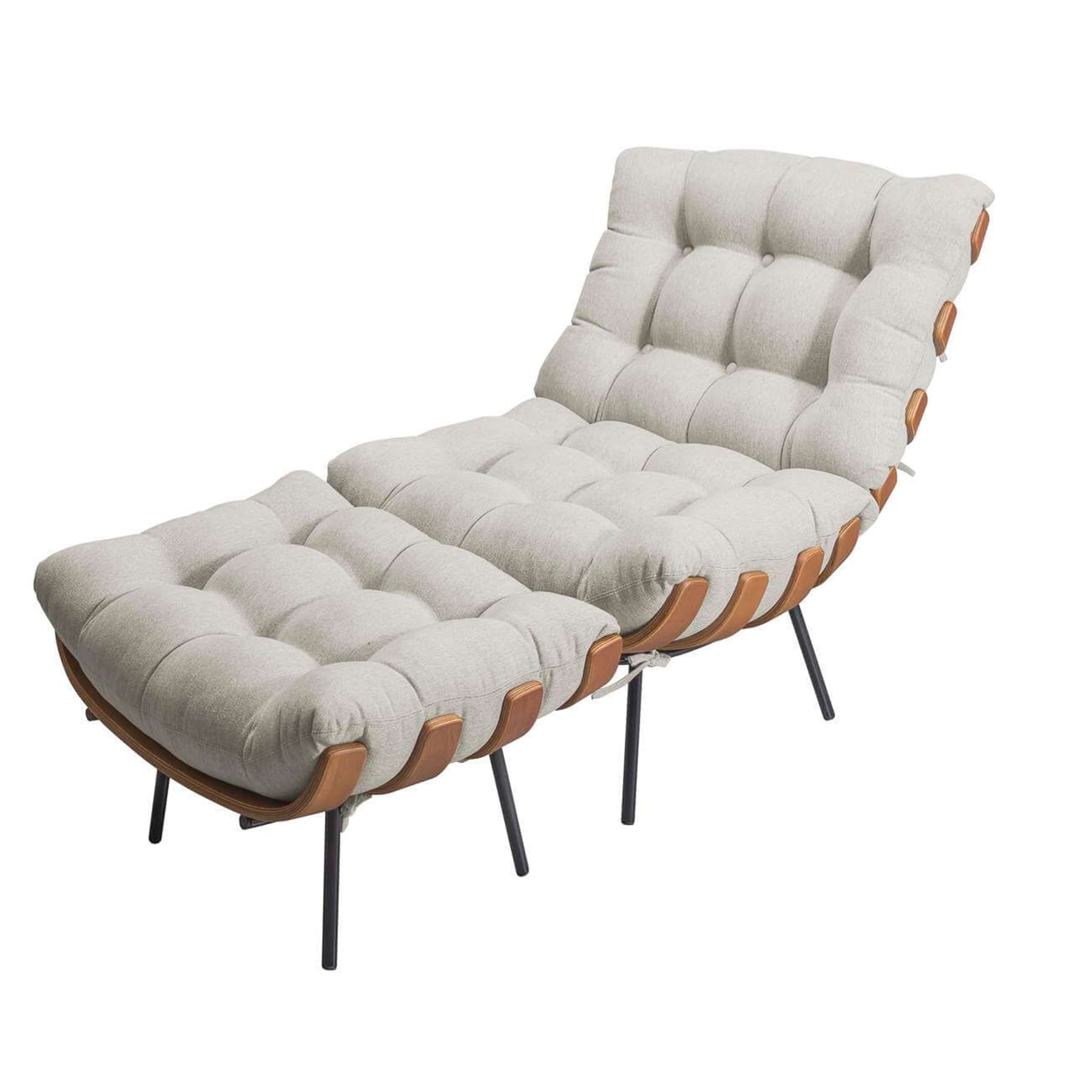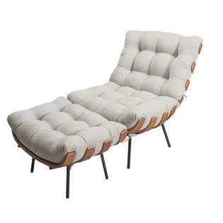 poltrona costela em linho com puff