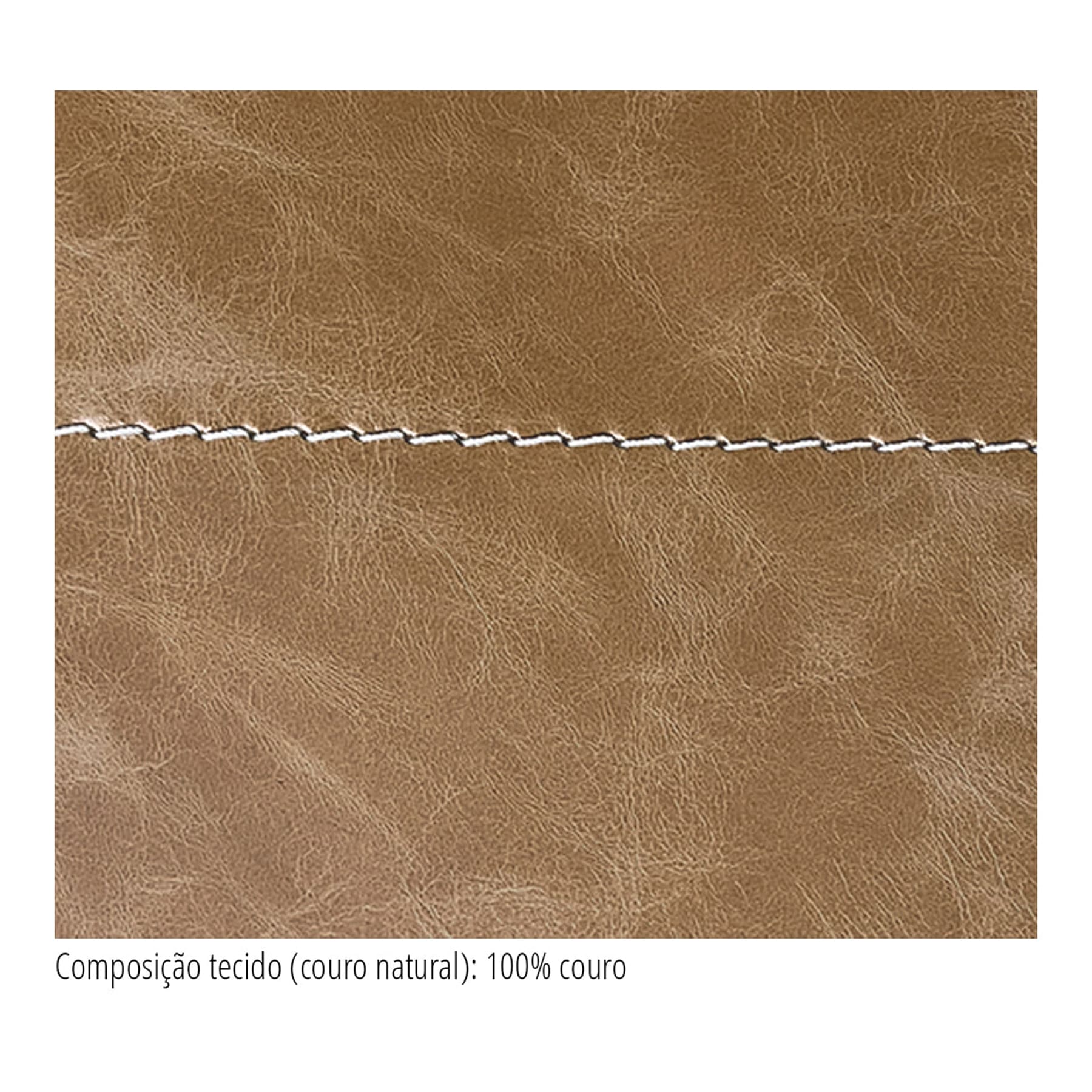 Base em aço carbono com acabamento em pintura epóxi preta fosca. Estrutura em MDF revestida com espuma D28 soft, manta acrílica e couro natural 100% couro. *Produto entregue montado.
