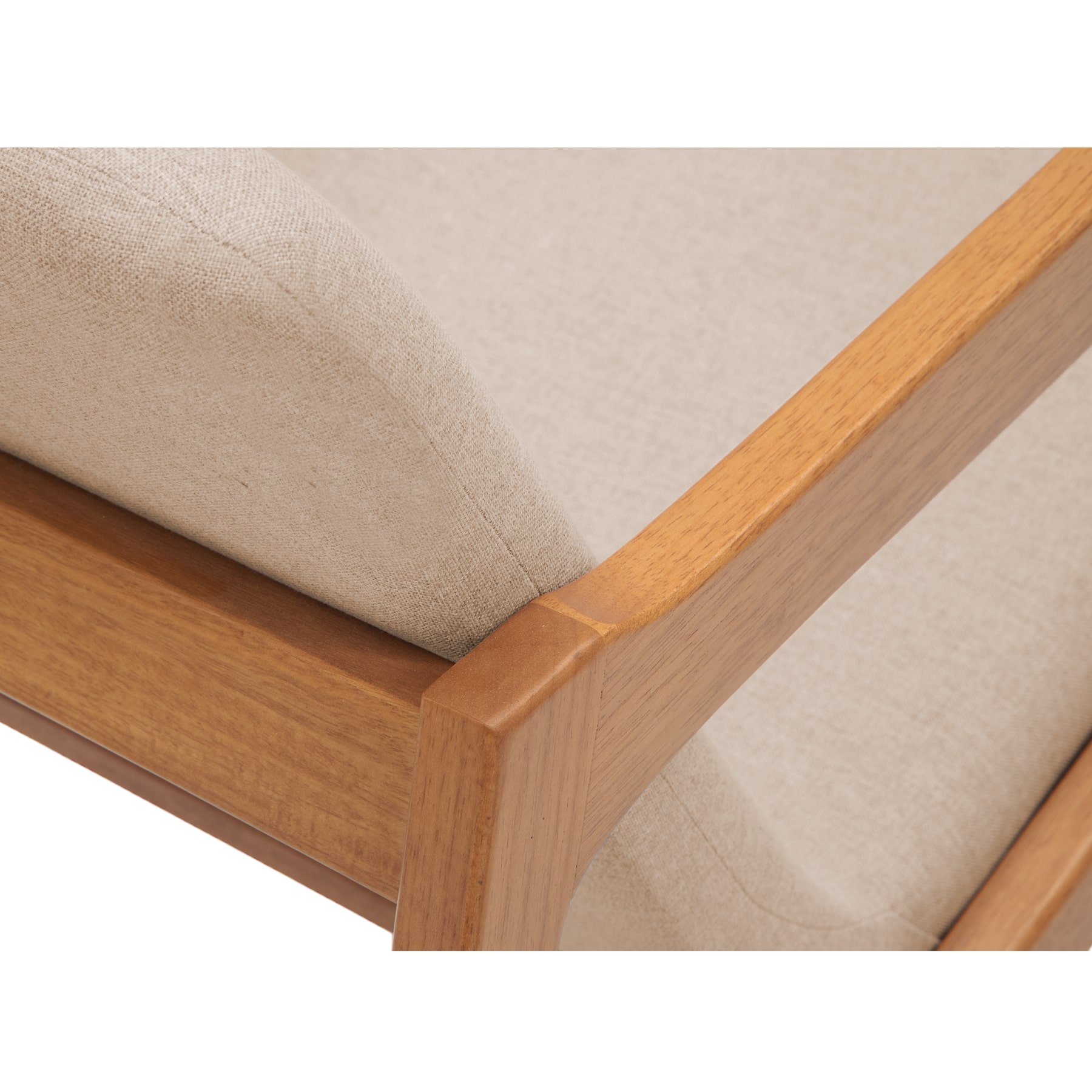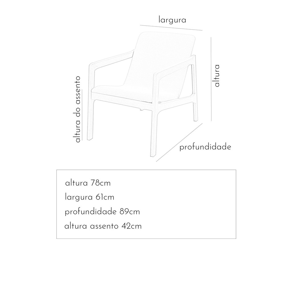 Estrutura em madeira maciça tauari. Concha em madeira multilaminada curva estofada em espuma D28 e tecido. *Produto entregue montado.