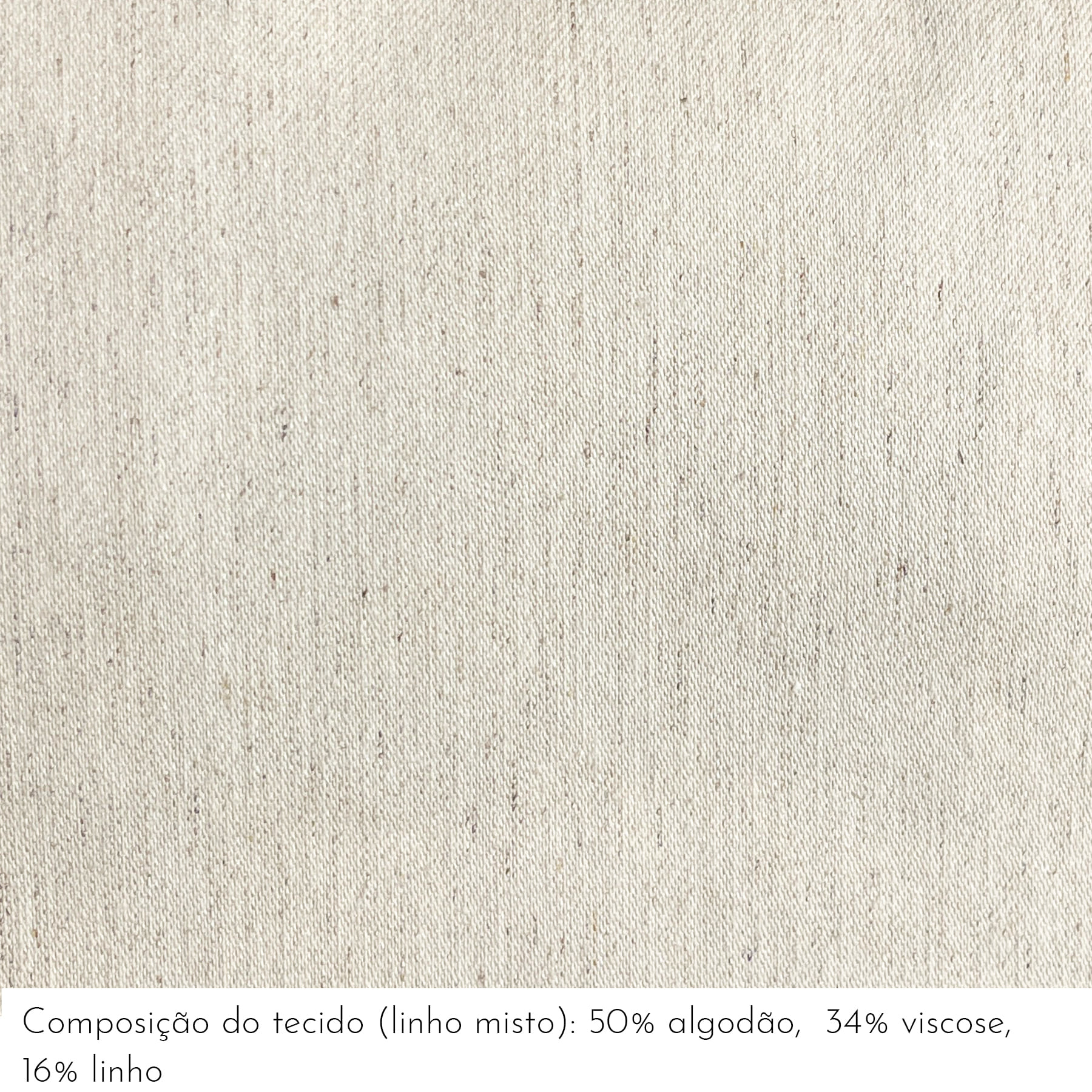 Estrutura em madeira maciça de jequitibá. Assento em madeira multilaminada curva, estofado em 20mm de espuma D28 e tecido. *Produto entregue montado.