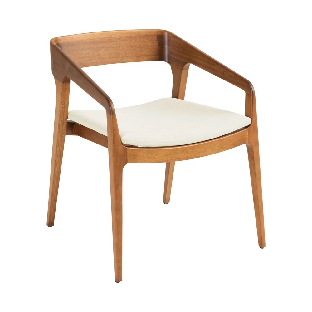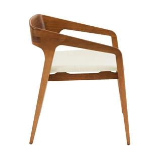 Com estrutura em madeira maciça e um desenho que mescla linhas retas e arredondadas, a poltrona melve é sofisticada. Pode ser usada como cadeira com braços na sala de jantar, na sala como assento extra e no quarto, trazendo sempre um ar moderno aos ambientes.