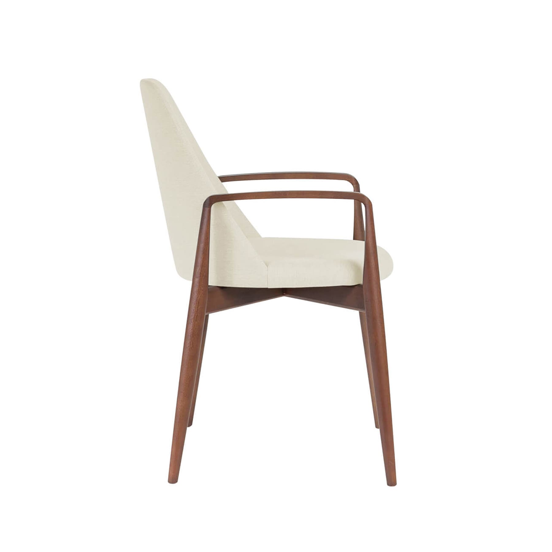 A concha arredondada e a delicadeza do desenho e acabamento dos braços dá origem a uma poltrona contemporânea e sofisticada. Pode ser usada como poltrona de complemento em todos ambientes e como cadeira na sala de jantar.