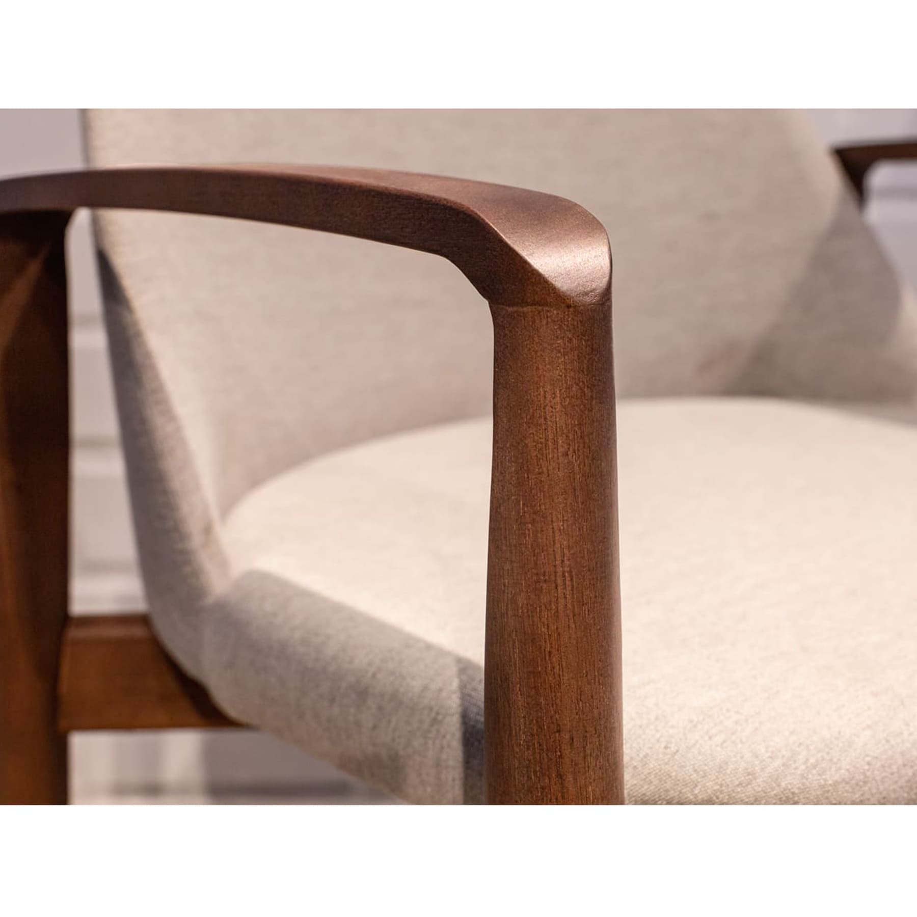 Estrutura em madeira maciça tauari tingida. Concha em compensado moldado, estofado em espuma e tecido. *Produto entregue montado.
