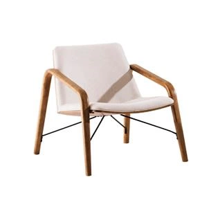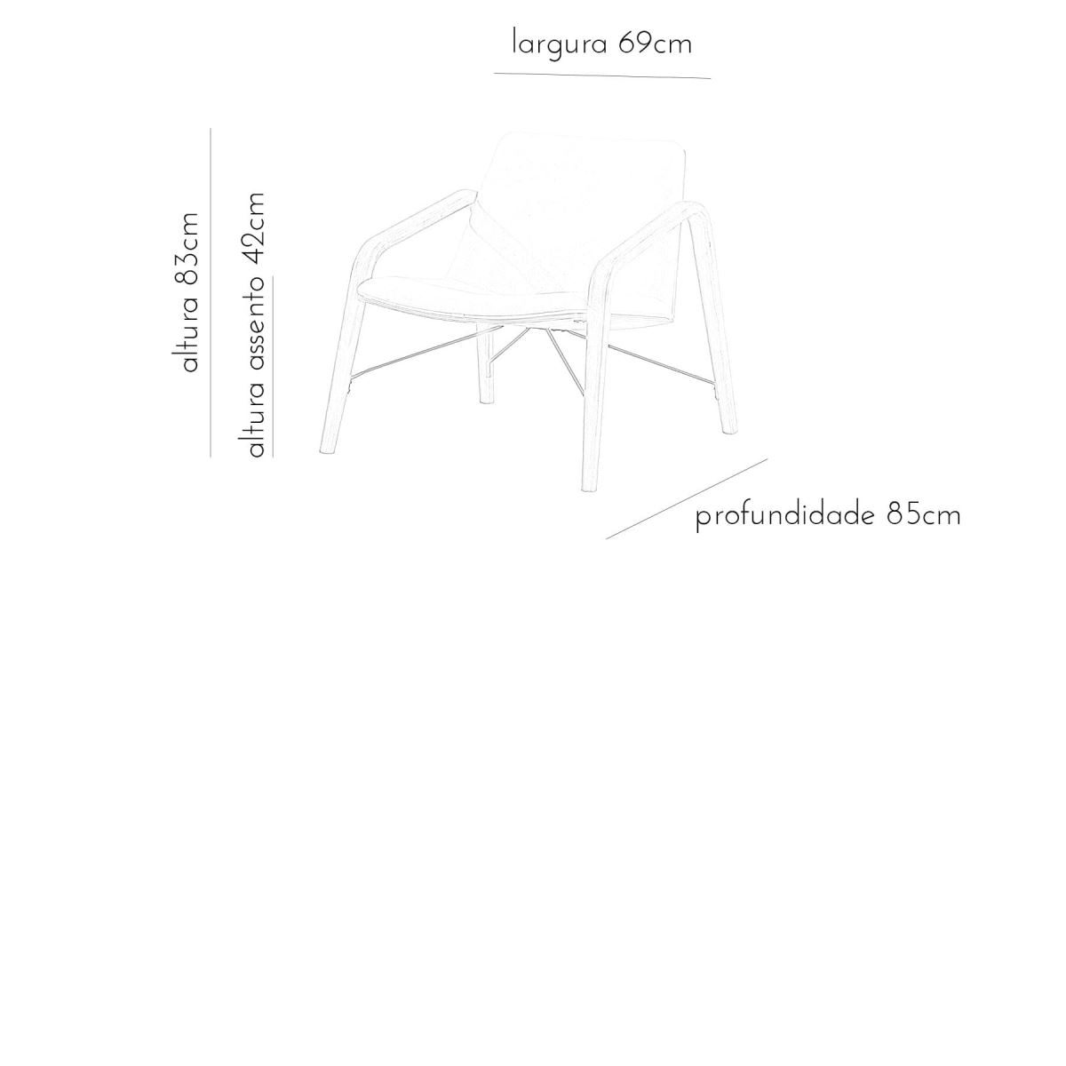Pés e braços em madeira maciça. Estrutura do assento em MDF. Detalhe em aço carbono com pintura preta. Estofada em espuma D30 e tecido. *Produto entregue montado.