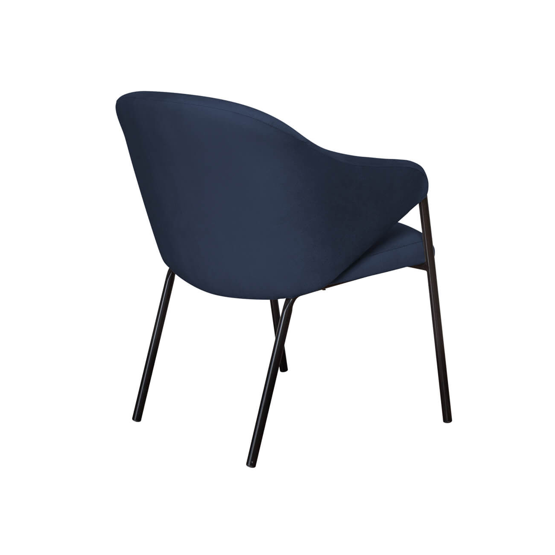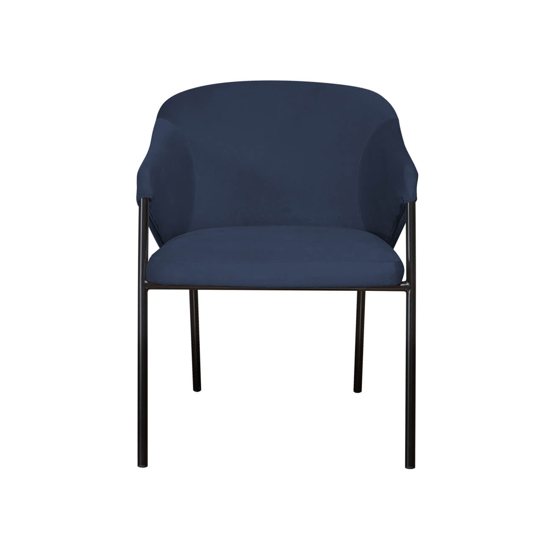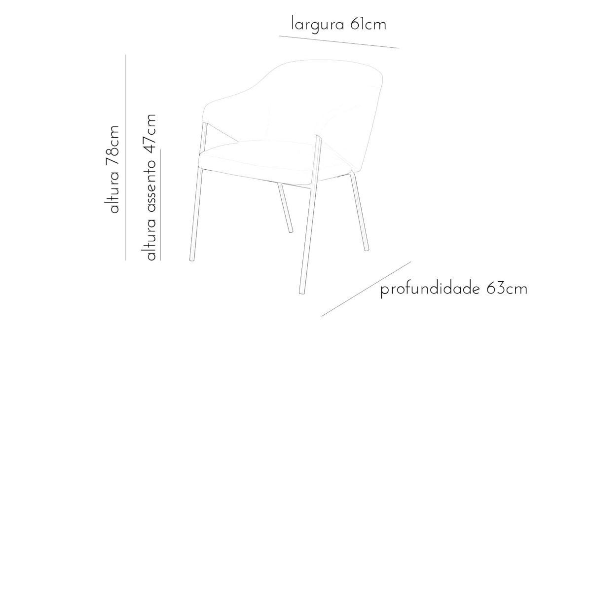 Pés em tubo de aço carbono com pintura epóxi preta fosca. Estrutura da concha em madeira e assento com percintas. Estofada em espuma D-26, manta de fibra e tecido veludo fosco com composição 100% poliéster. *Produto entregue montado.