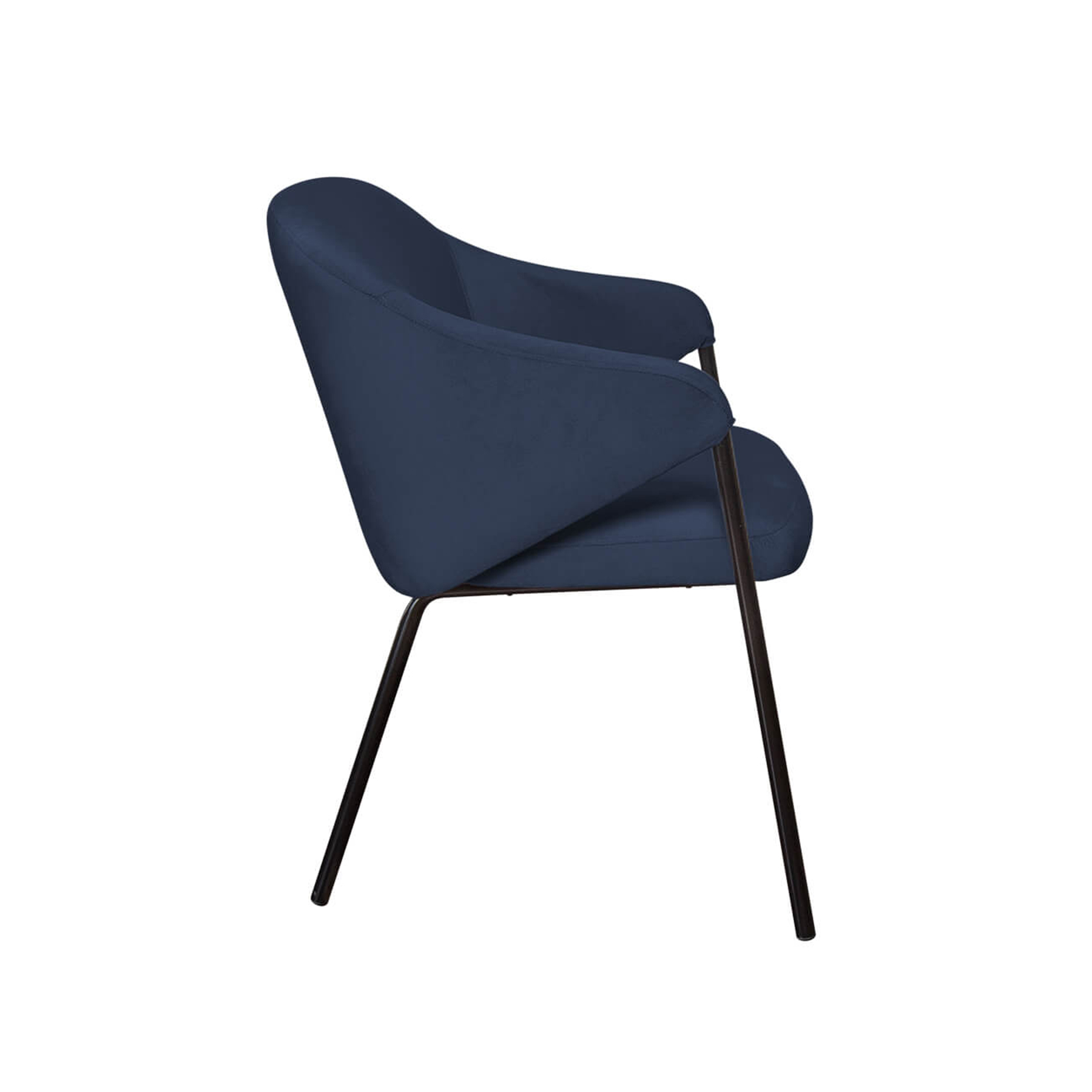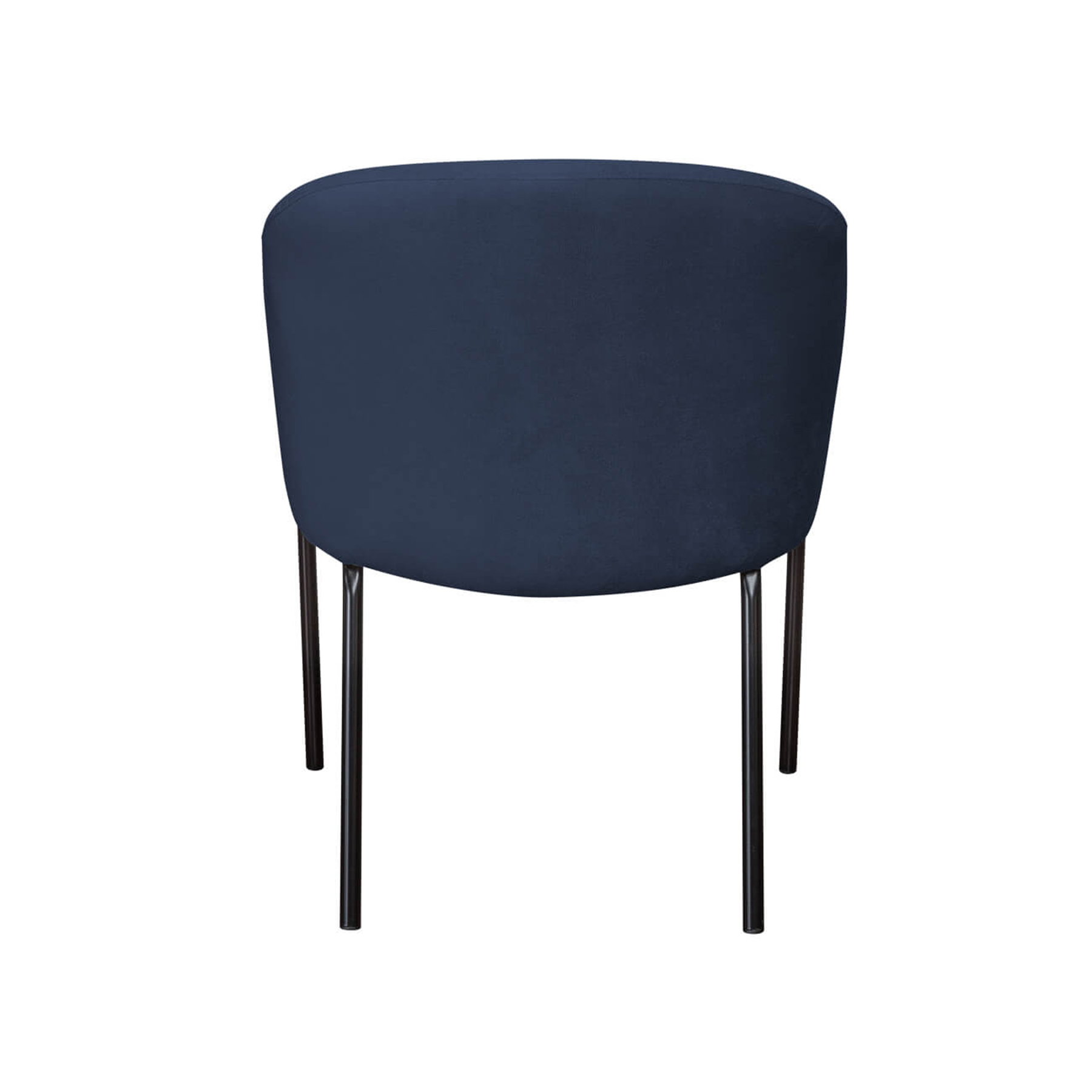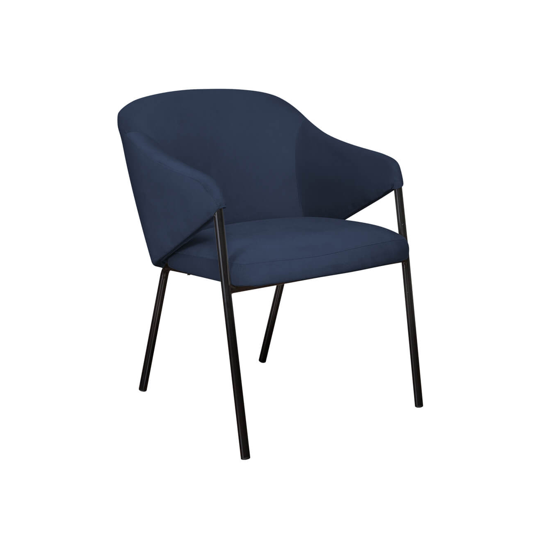 Pés em tubo de aço carbono com pintura epóxi preta fosca. Estrutura da concha em madeira e assento com percintas. Estofada em espuma D-26, manta de fibra e tecido veludo fosco com composição 100% poliéster. *Produto entregue montado.