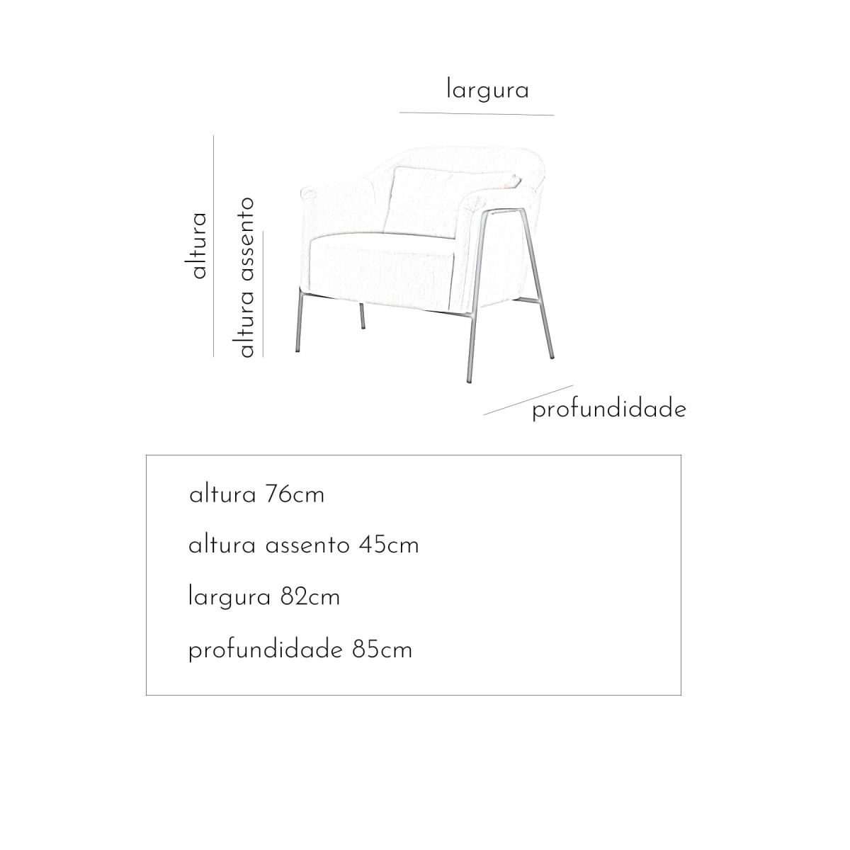 poltrona estofada em metal ginza