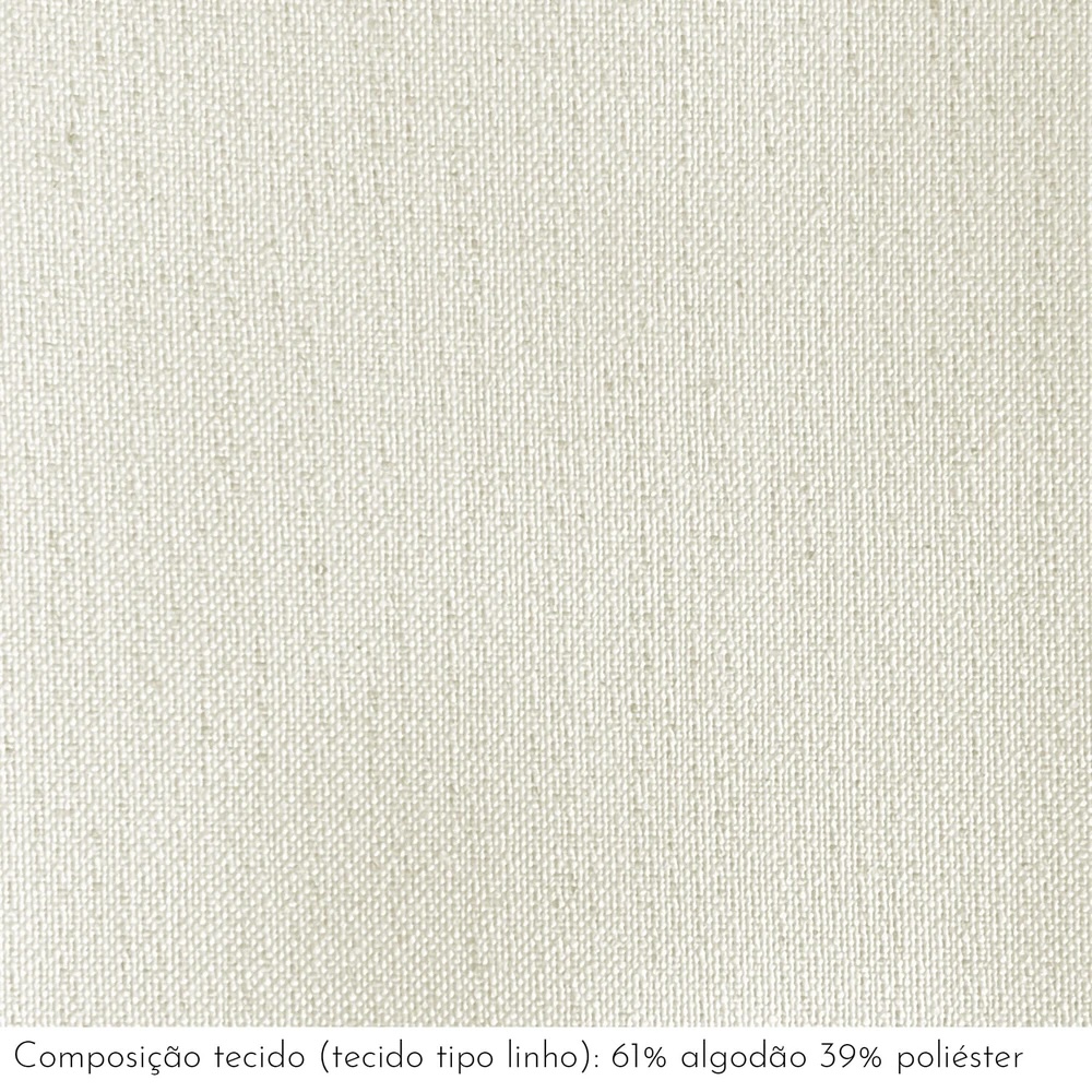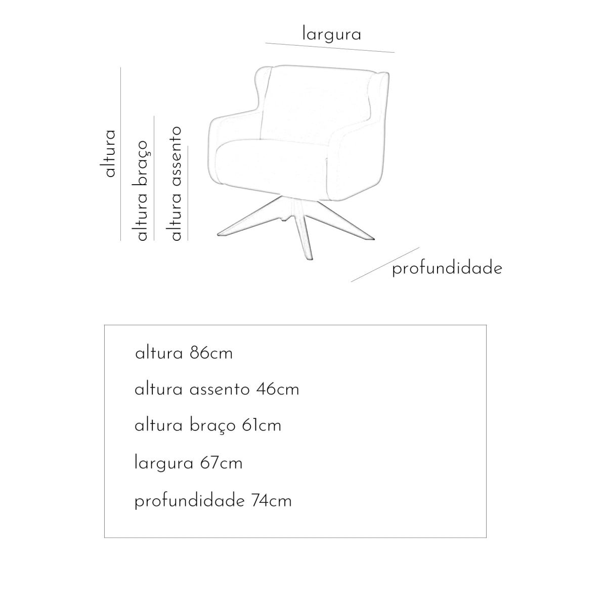Base giratória em madeira maciça, estrutra interna em percintas e MDF com estofamento em espuma D28 e tecido. *Produto entregue montado.