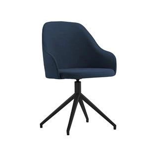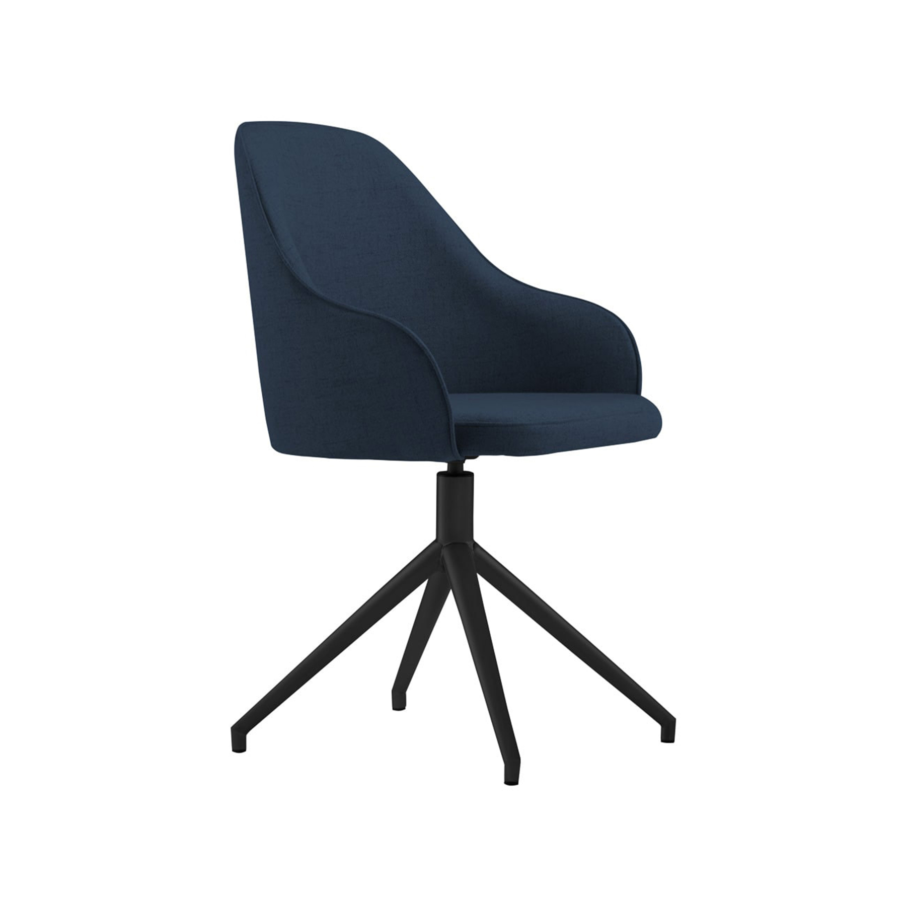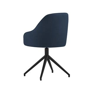 Base giratória em aço carbono com acabamento em pintura epóxi preta. Concha em madeira multilaminada, estofada com espuma D28 e tecido. *Esse produto pode ser produzido em outras cores de base e tecidos. Para personalização entre em contato através de qualquer canal de atendimento. *Produto entregue montado.