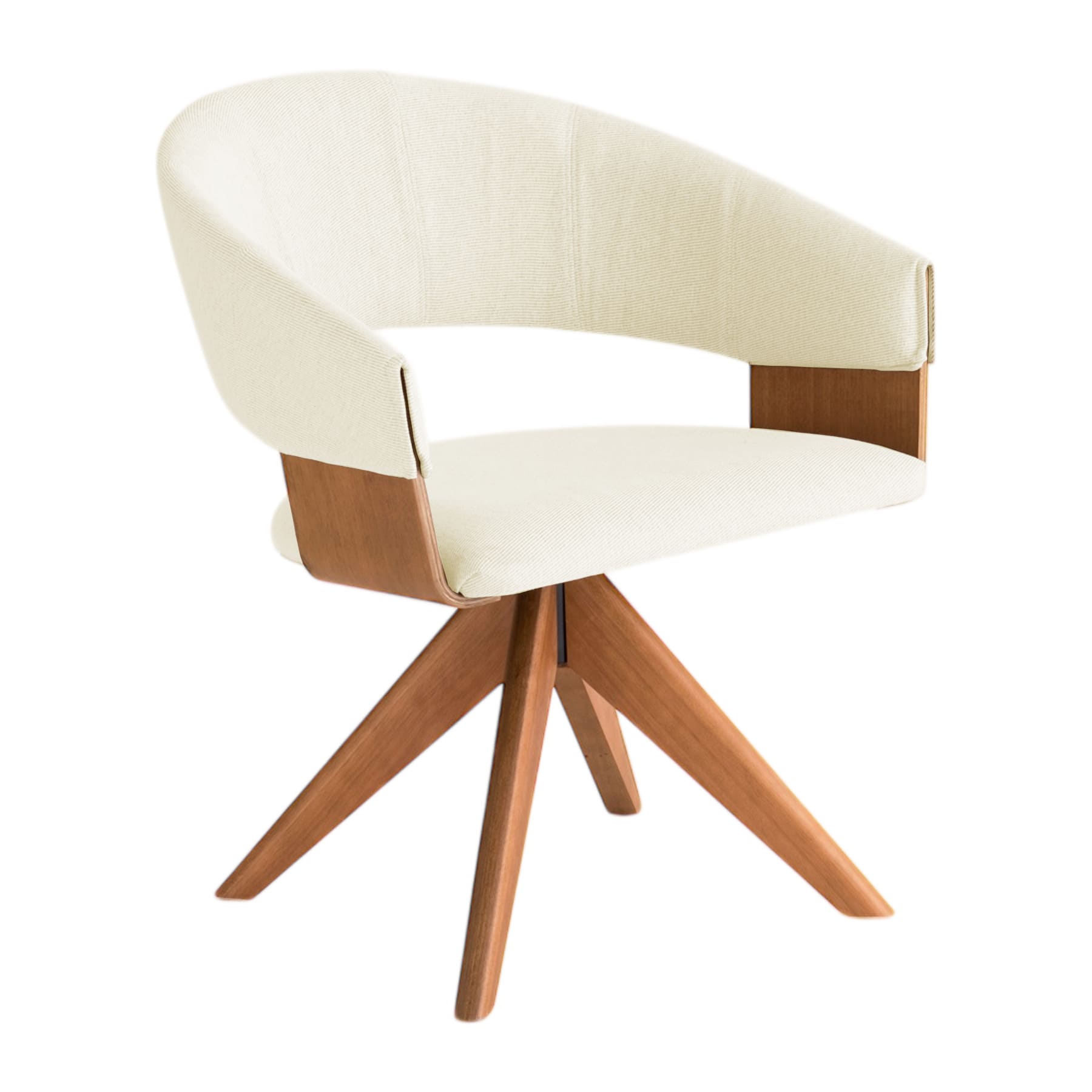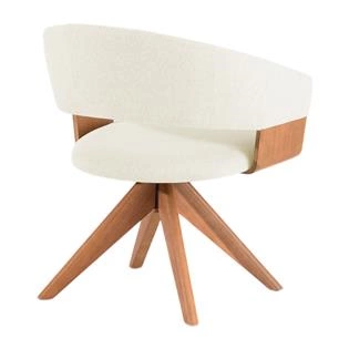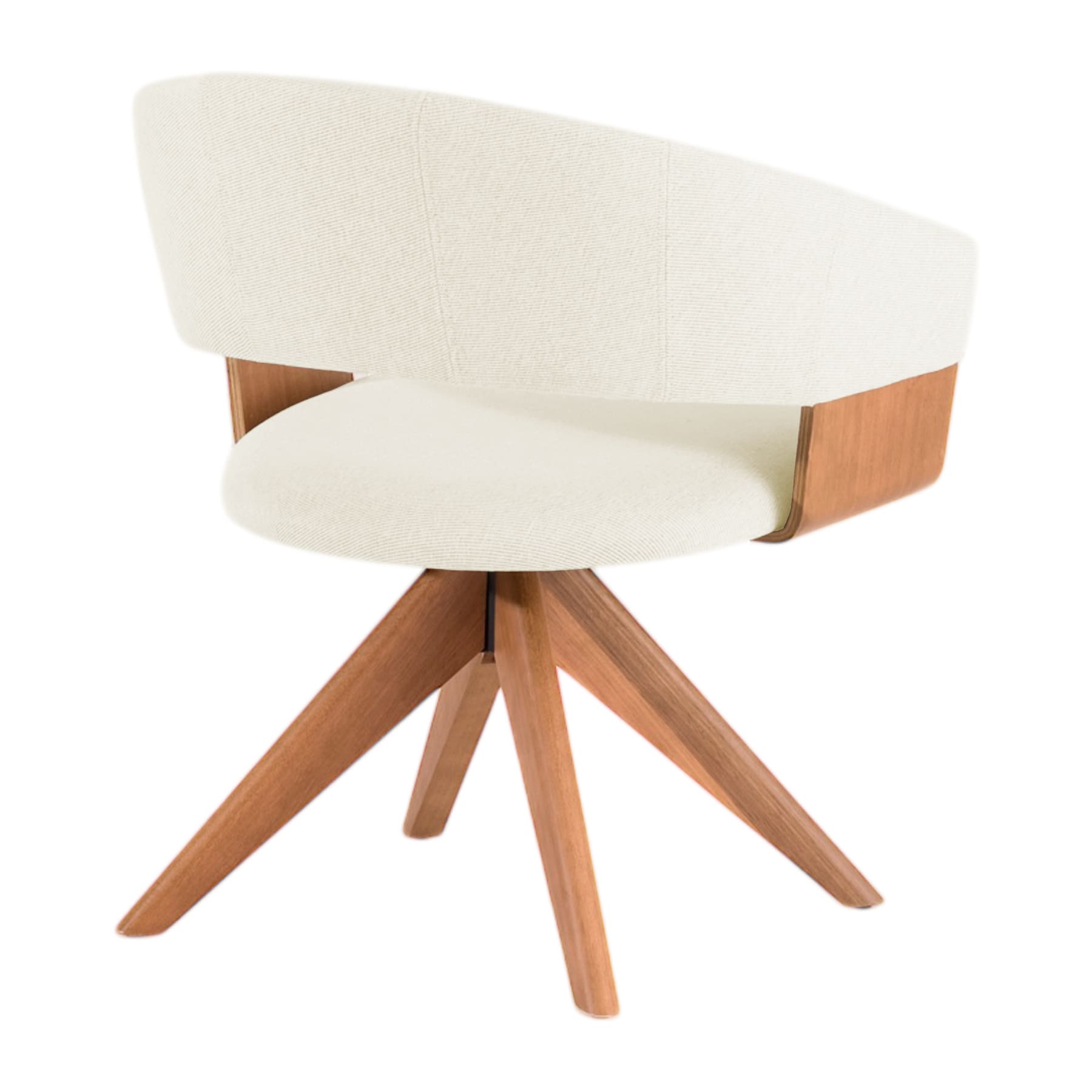 Uma poltrona para mesa de jantar, home office ou para qualquer espaço que precise de uma poltrona compacta. A base giratória em madeira dá leveza ao visual e ainda garante praticidade no dia a dia. Uma peça que vai bem em diferentes contextos e traz personalidade para qualquer ambiente.