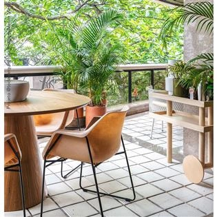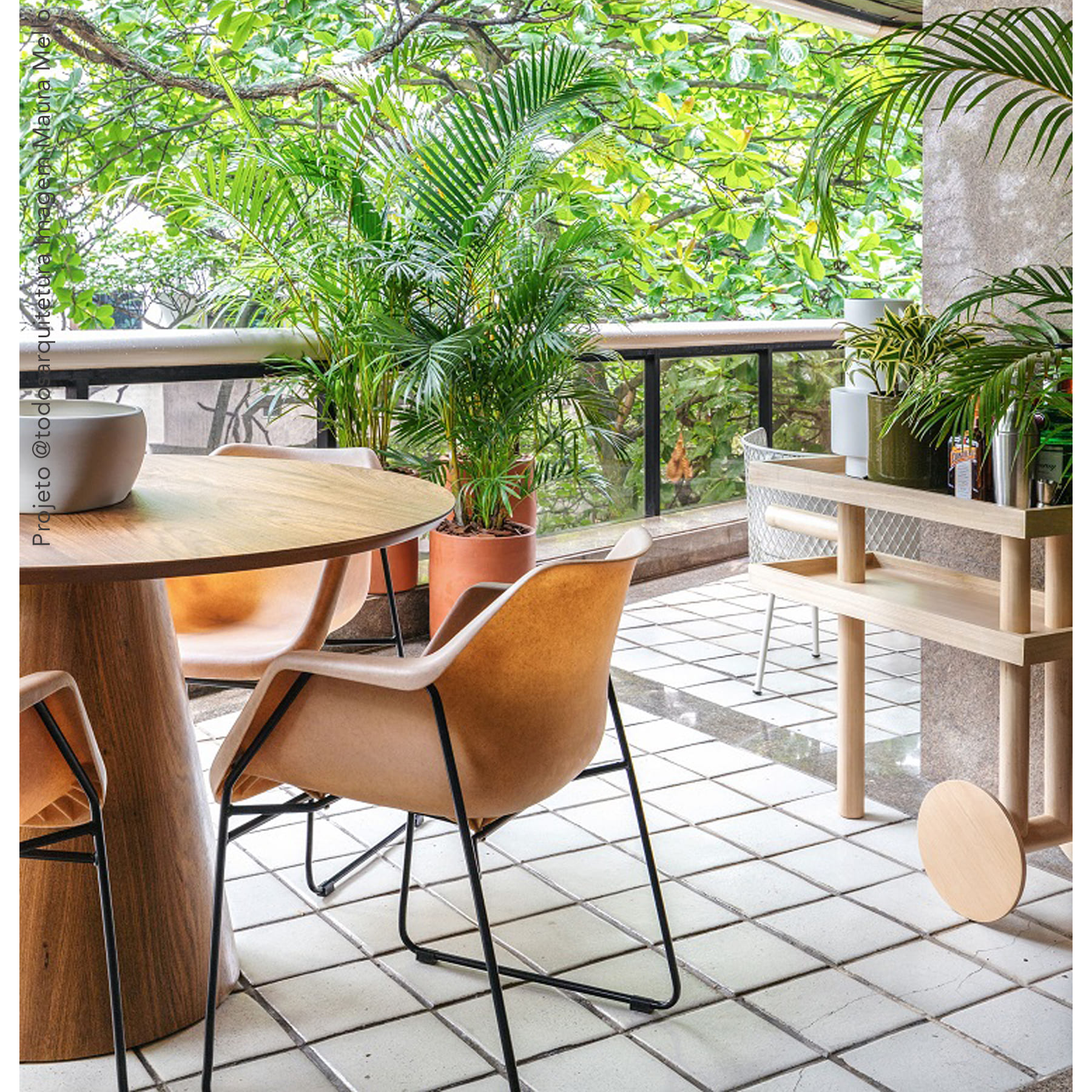 Com inspiração no design de mobiliário dos anos 50 e 60, a poltrona lodelo é uma leitura moderna das formas daquelas décadas. Com material especial (a concha é produzida em polipropileno injetado com serragem) é uma escolha contemporânea.