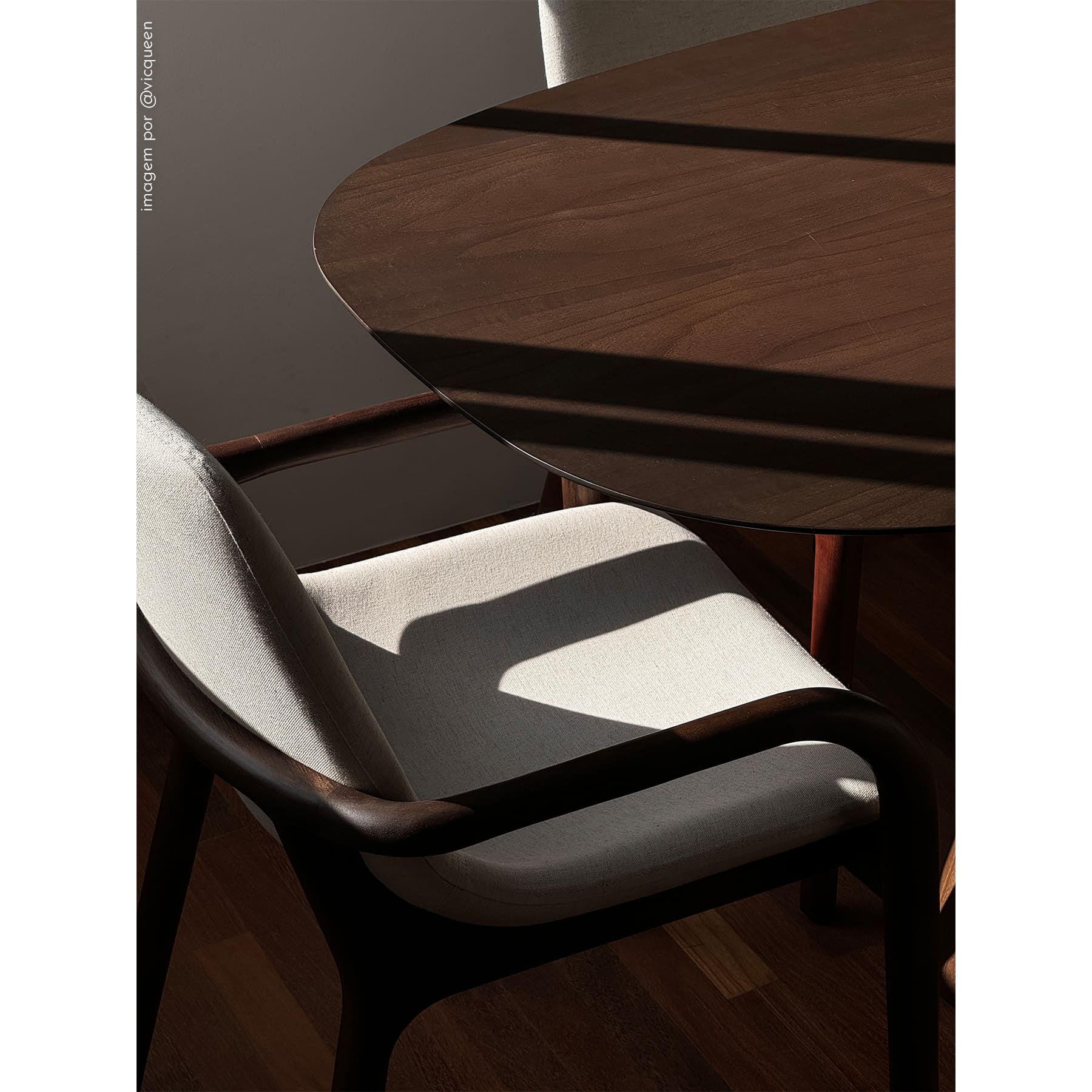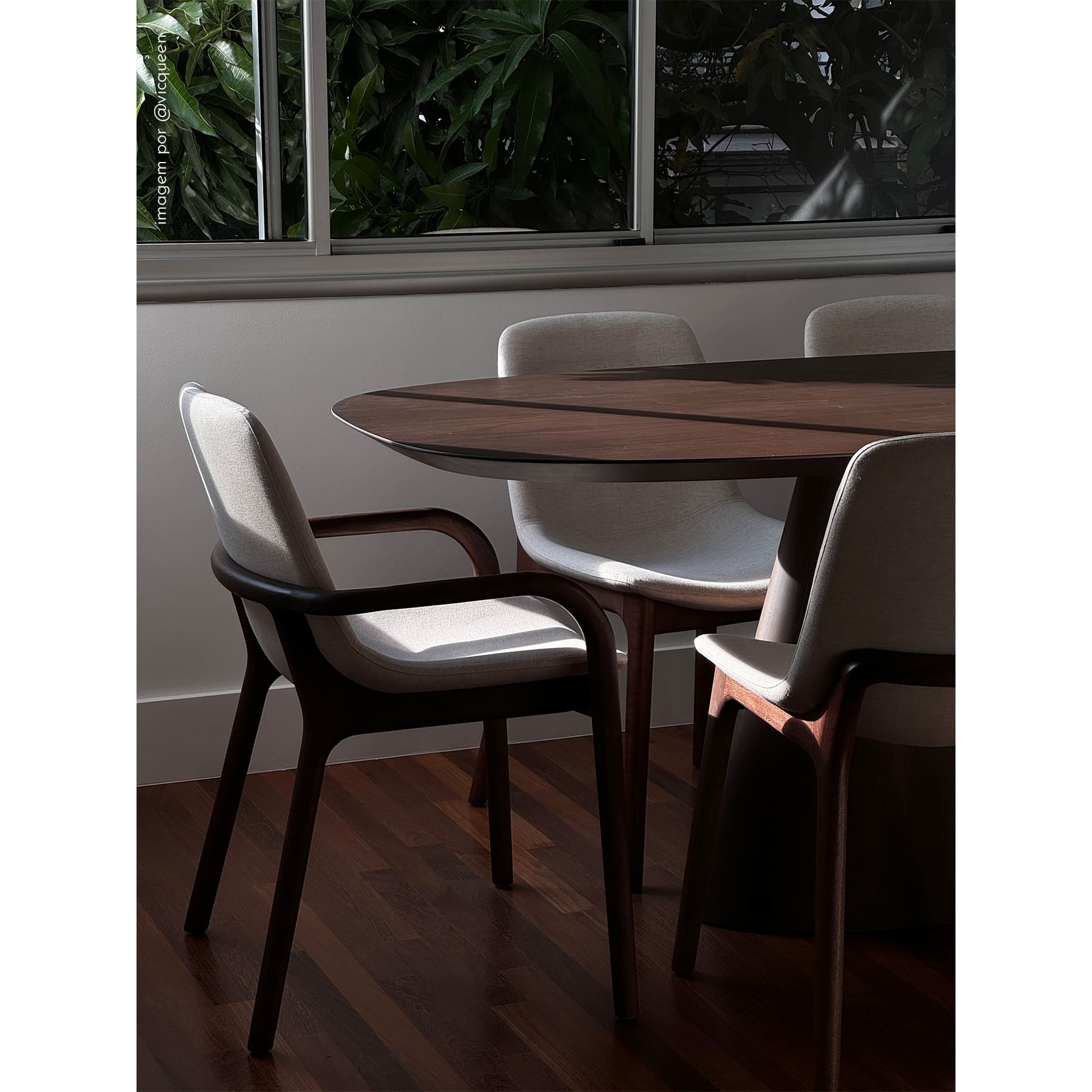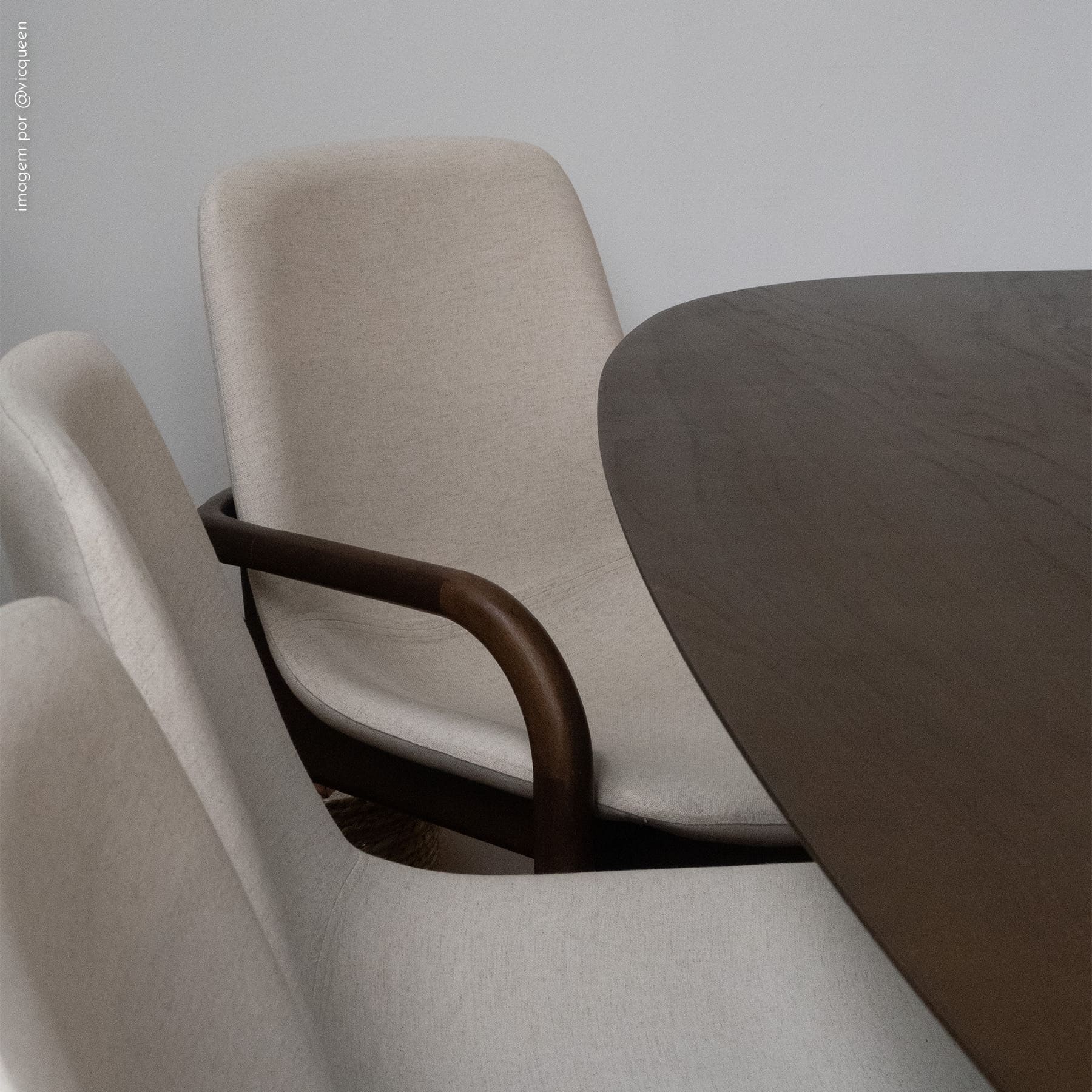 A versão poltrona de uma das nossas linhas mais vendidas chegou. A poltrona é perfeita para sala de jantar ou como complemento em qualquer outro ambiente. As linhas arredondadas e base em madeira, são super alinhadas com a tendência de formas orgânicas da decoração atual.