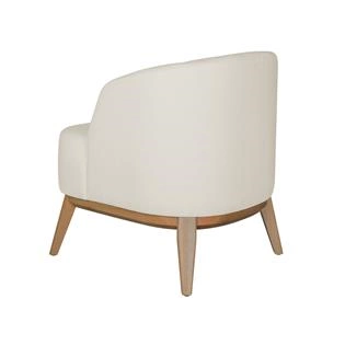 Base em madeira maciça tauari. Estrutura interna do encosto em madeira multilaminada curva. Estrutura do assento em percintas elásticas. Estofamento em espuma D28, fibra manta compactada e tecido.*Produto entregue montado.
