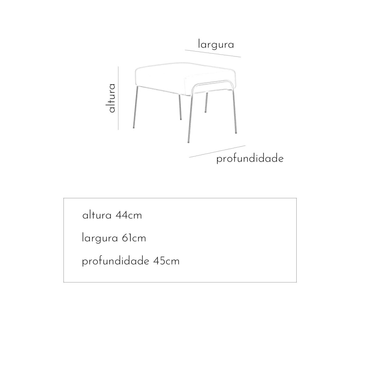 Base em aço carbono com pintura epoxi preta fosco. Estofado com estrutura em madeira multilaminada, com espuma D28 e tecido. *Produto entregue montado.