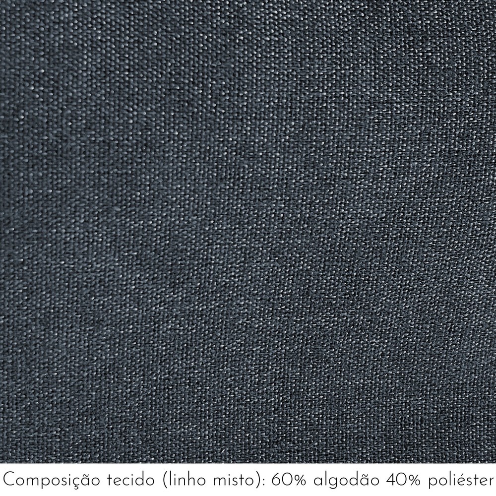 Estrutura interna em madeira de eucalipto. Assento com percinta elástica italiana, revestido por espuma D28 e espuma hipersoft. Estofamento com acabamento em debrum matelassado. Pés em requadro de madeira com acabamento em pintura preta. *Produto entregue montado.