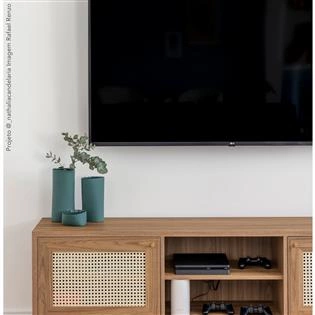 A sensação de aconchego que a palha trás aos ambientes com desenho moderno, adaptado aos ambientes contemporâneos. O rack villa é cheio de detalhes encantadores, que complementam o visual da palha com perfeição.