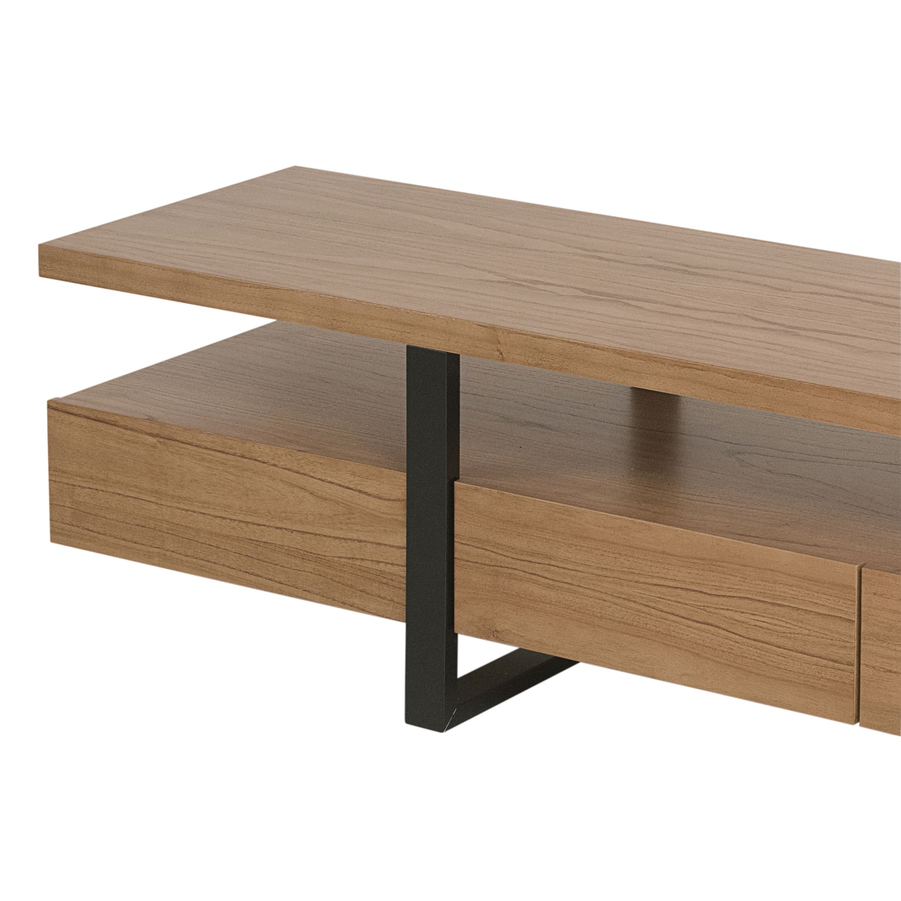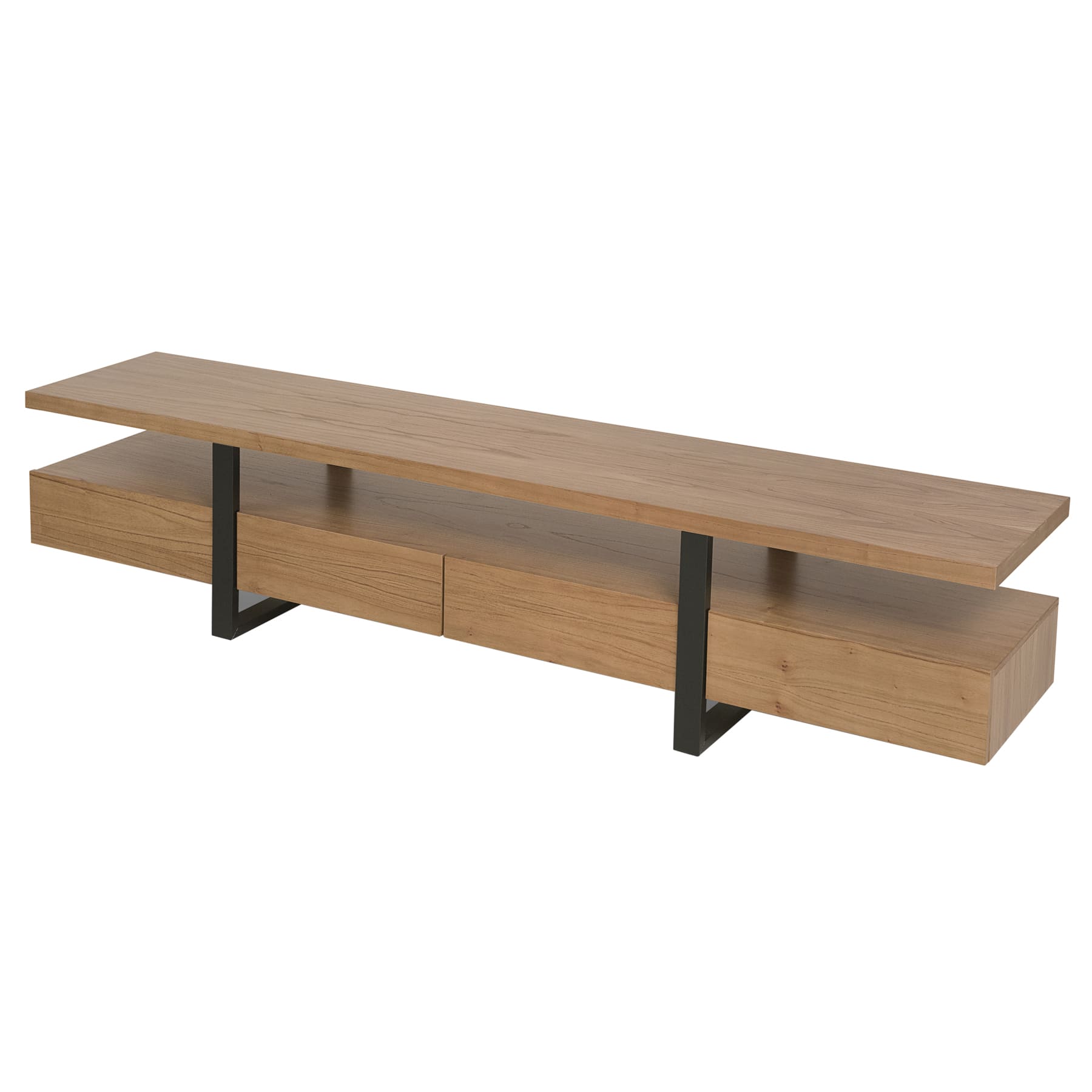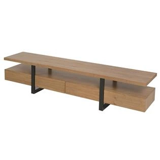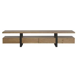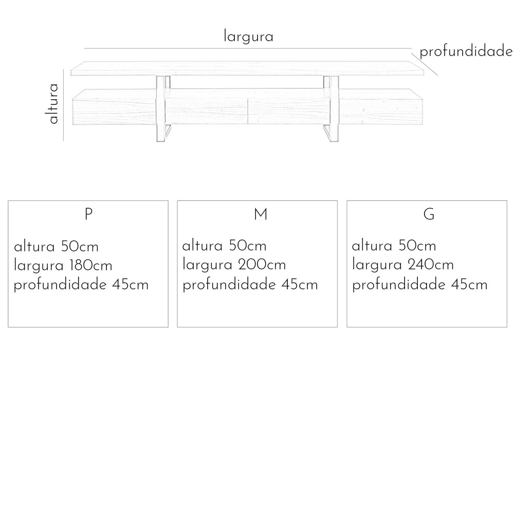 O rack avra é produzido em madeira cinamomo, com detalhe em laca preta, que dá um toque industrial ao desenho.
