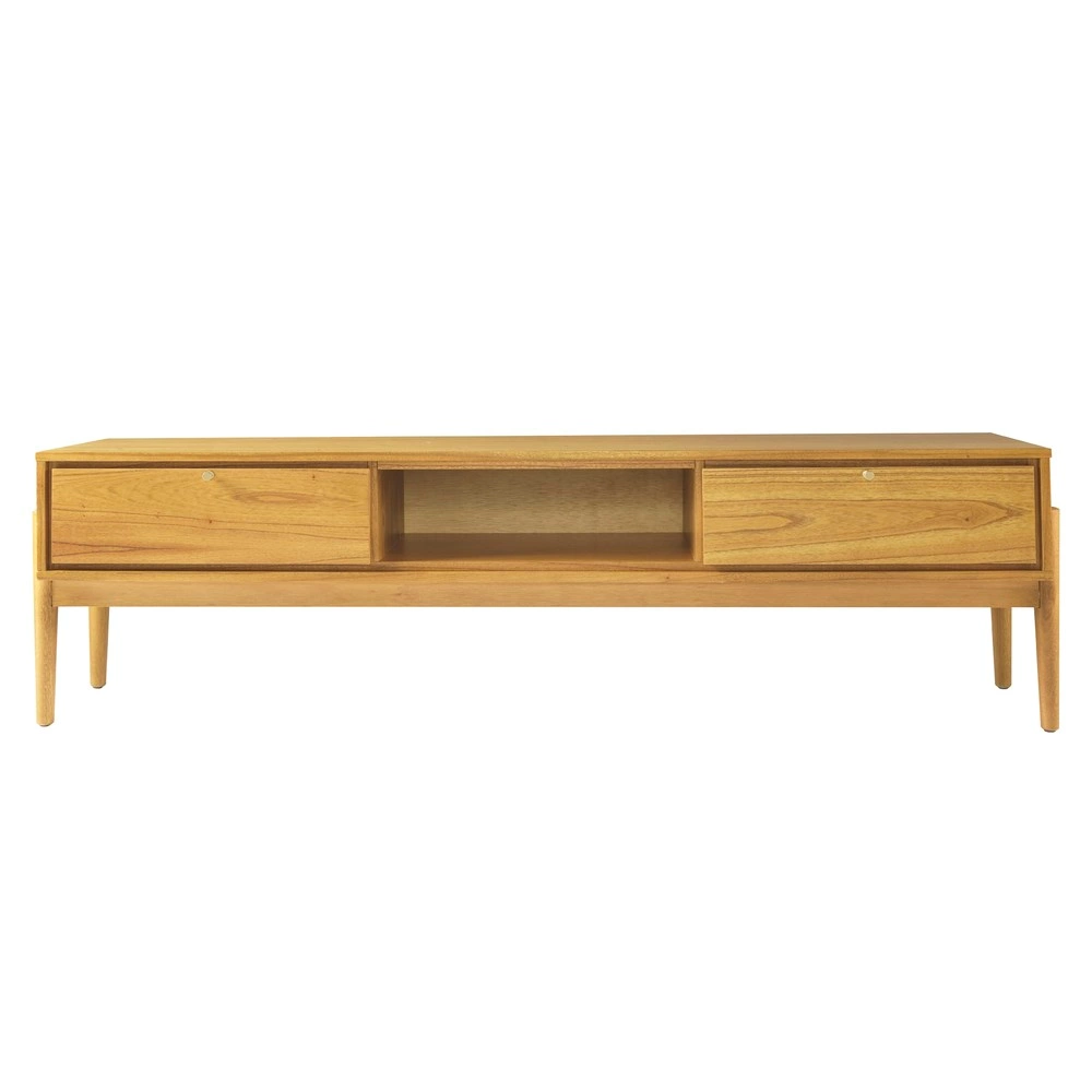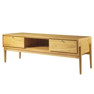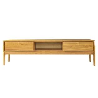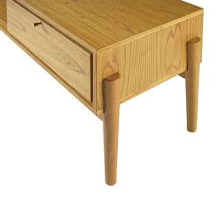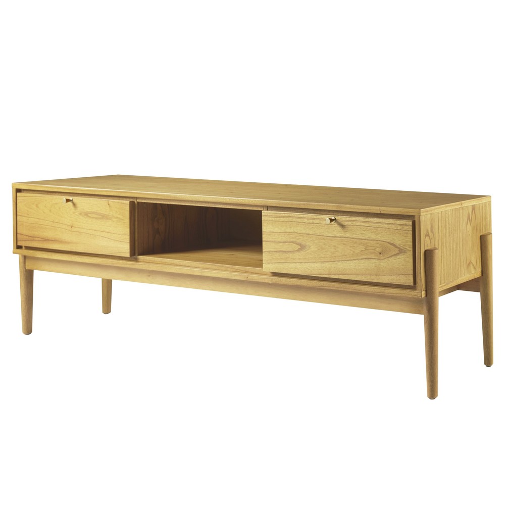 O rack em madeira da linha pleines é sofisticado e contemporâneo. A base em madeira maciça arredondada traz leveza ao desenho da caixa, que com duas gavetas oferece bastante espaço de armazenagem.