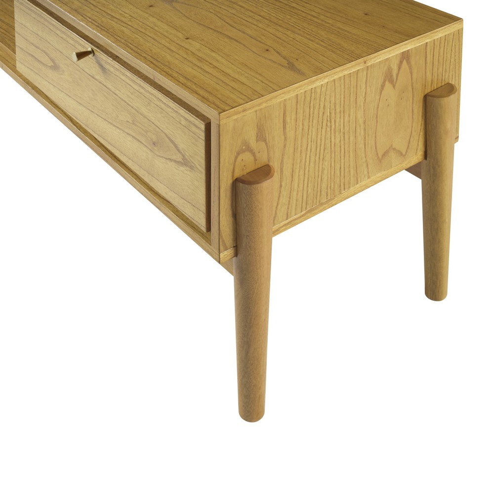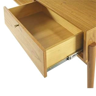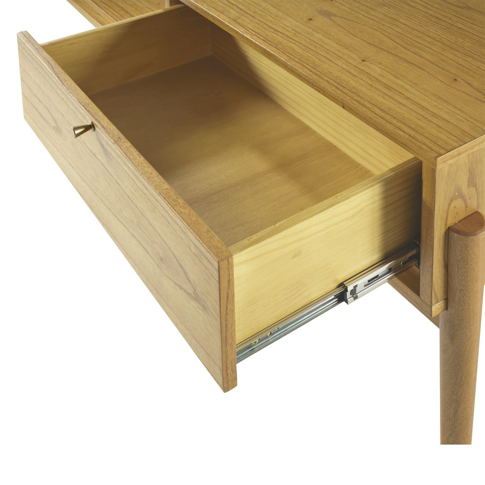 Base em madeira maciça. Caixa em MDF revestido em lâmina de madeira natural cinamomo. Gavetas com corrediças telescópicas. *Produto entregue montado.