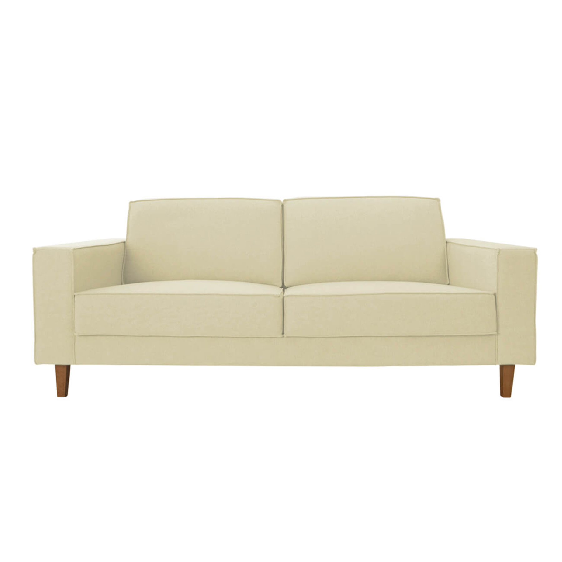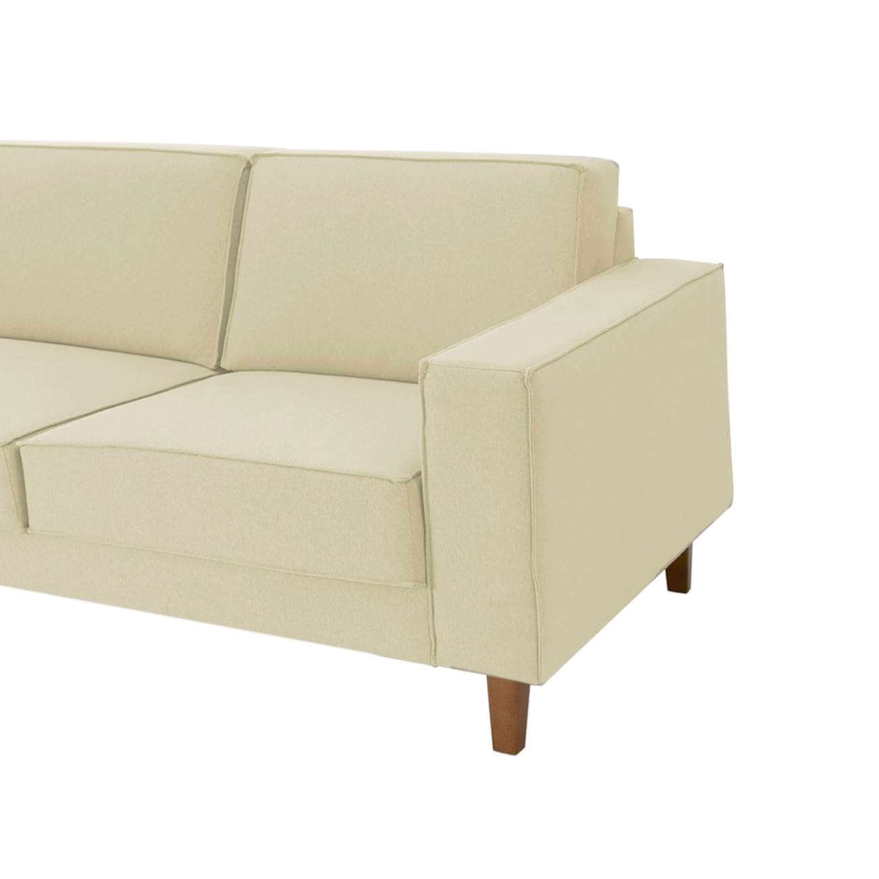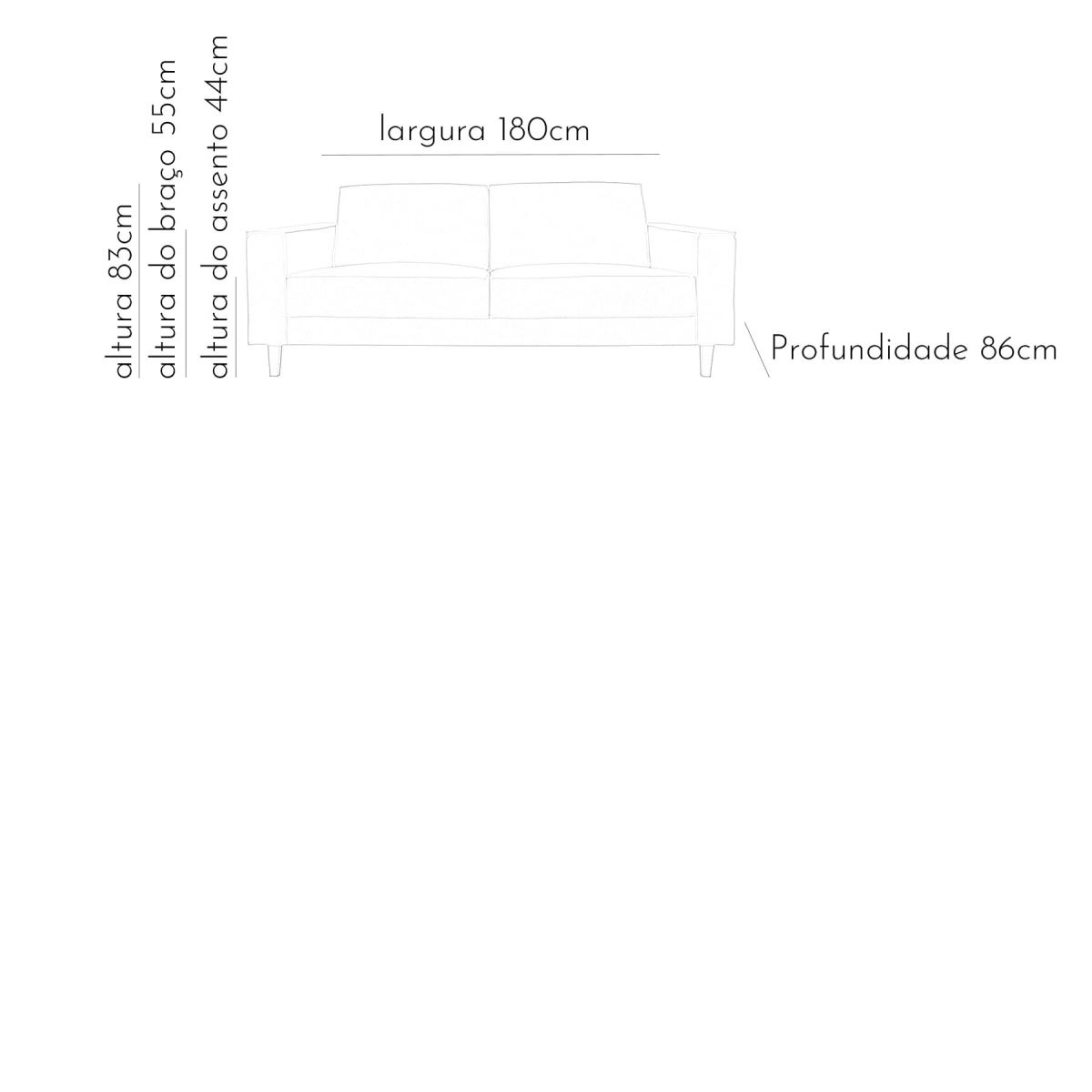 Estrutura em madeira tratada especial para estofaria (processo de secagem especial para evitar danos estruturais). Pés em madeira maciça com encaixe em aço. Estrutura interna do assento em percintas elásticas. Almofadas do assento e encosto fixas, em espuma D28. *Produto entregue semi-montado. Nível de dificuldade de montagem: fácil. Não requer montagem profissional.